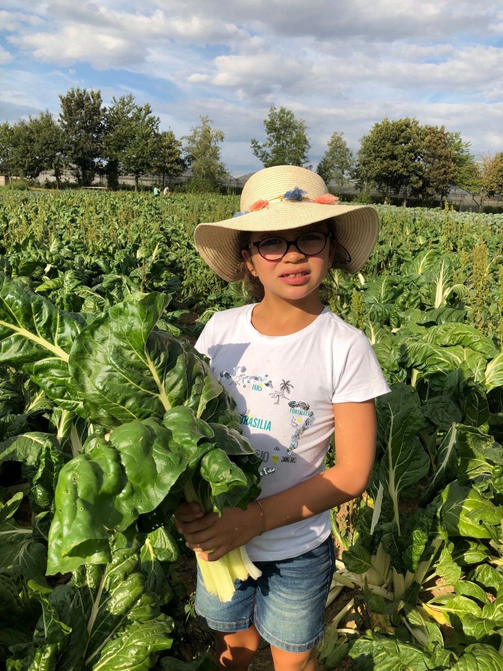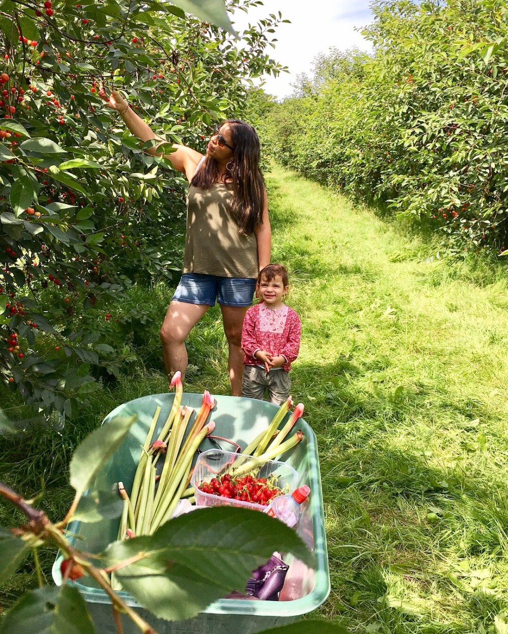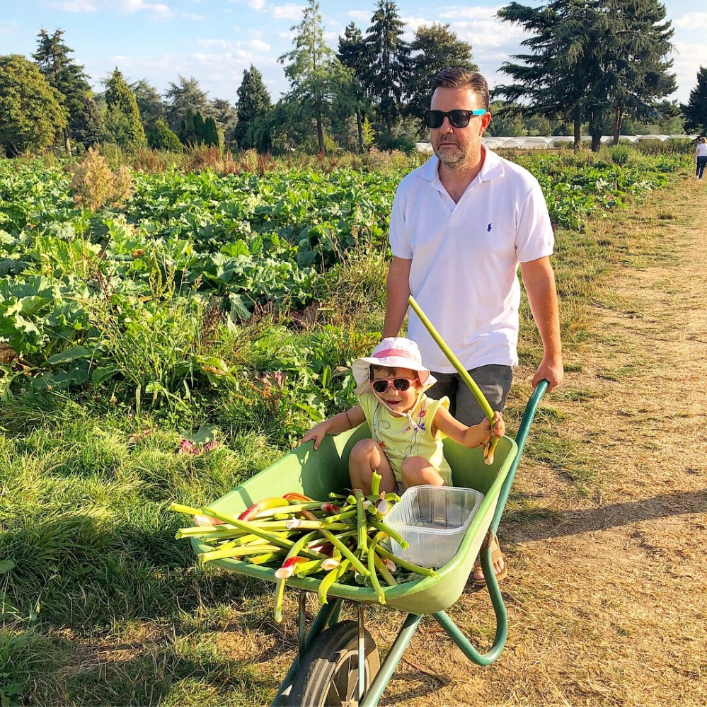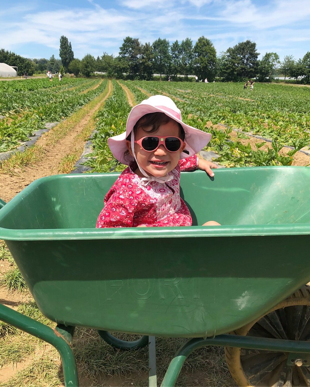 Je pense que de toutes les activités proposées par la Ferme de Gally c’est celle que nous préférons. Quand il fait beau, c’est super agréable de venir cueillir des fruits et des légumes de saison et même des fleurs. Avec Papa Bougeotte, nous adorons faire découvrir les fruits et les légumes à nos filles. Munis d’une brouette, on sillonne les 60 hectares de terres agricoles, entre serres et vergers. C’est important qu’elles apprennent à reconnaître les variétés, qu’elles connaissent les saisons et qu’elles sachent qu’on ne trouve des fraises ou des framboises qu’en été. Il y a une certaine fierté pour elles de cueillir ces aliments qui finiront dans leurs assiettes. En rentrant à la maison, on refait un petit inventaire de tout ce que l’on a cueilli et on essaie un maximum de les cuisiner avec elles. On fait des tartes avec les framboises ou la rhubarbe. On fait des compotes avec les pommes. On fait de la purée avec les pommes de terre et les courgettes. On farcie les fleurs de courgettes. On fait une salade avec les tomates. Bref on essaie de manger sain et maison.