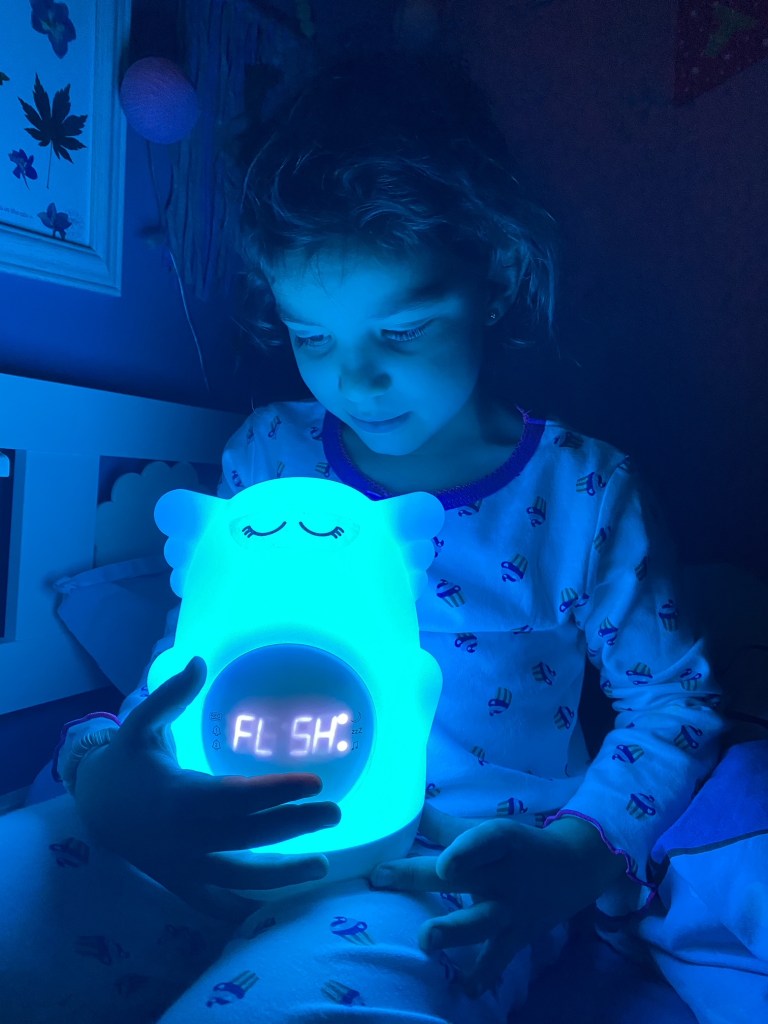 Depuis la rentrée, Tessa a un peu de mal à se lever. Dur de reprendre le rythme après autant de mois sans école. Alors ce réveil lumineux Akso tombe à pic ! Il est top car il va à la fois aider Tessa à s’endormir mais aussi à se lever à la bonne heure, comme une grande !