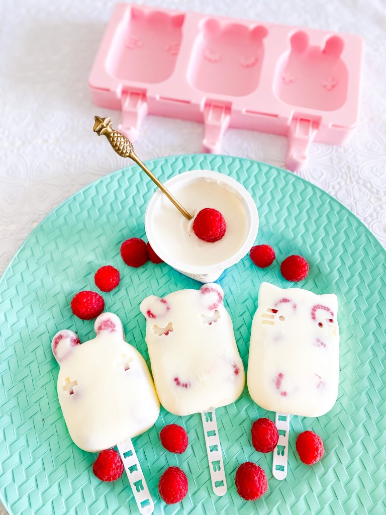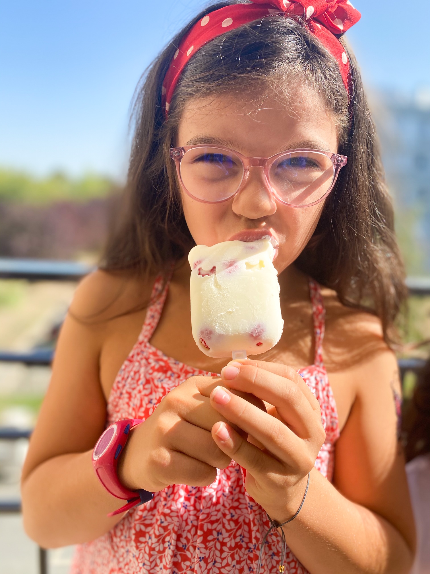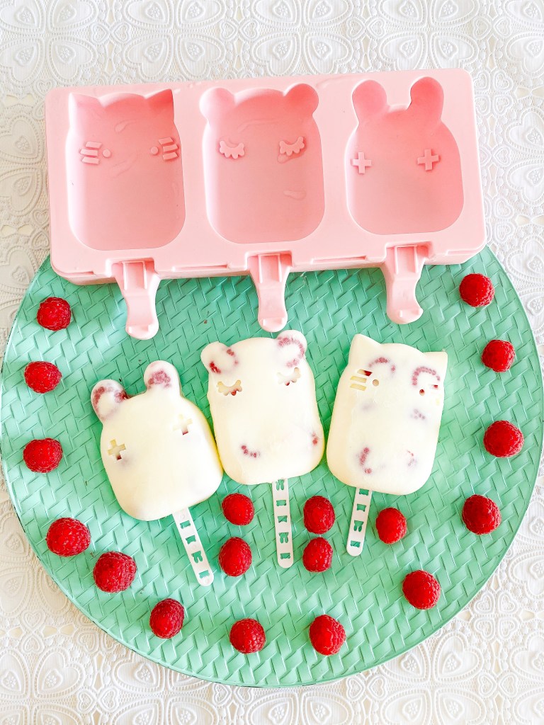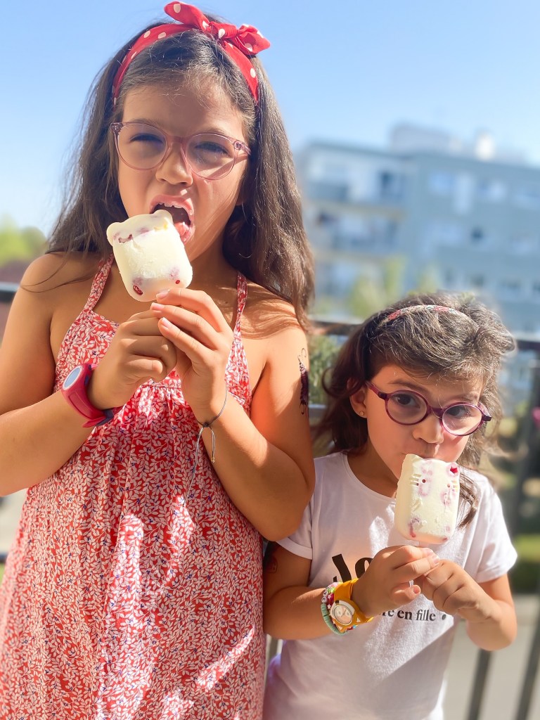 D’ailleurs, j’ai une petite recette de bâtonnets glacés maison à vous partager. Ces glaces au yaourt et framboises ont beaucoup plu aux filles lors de la canicule.