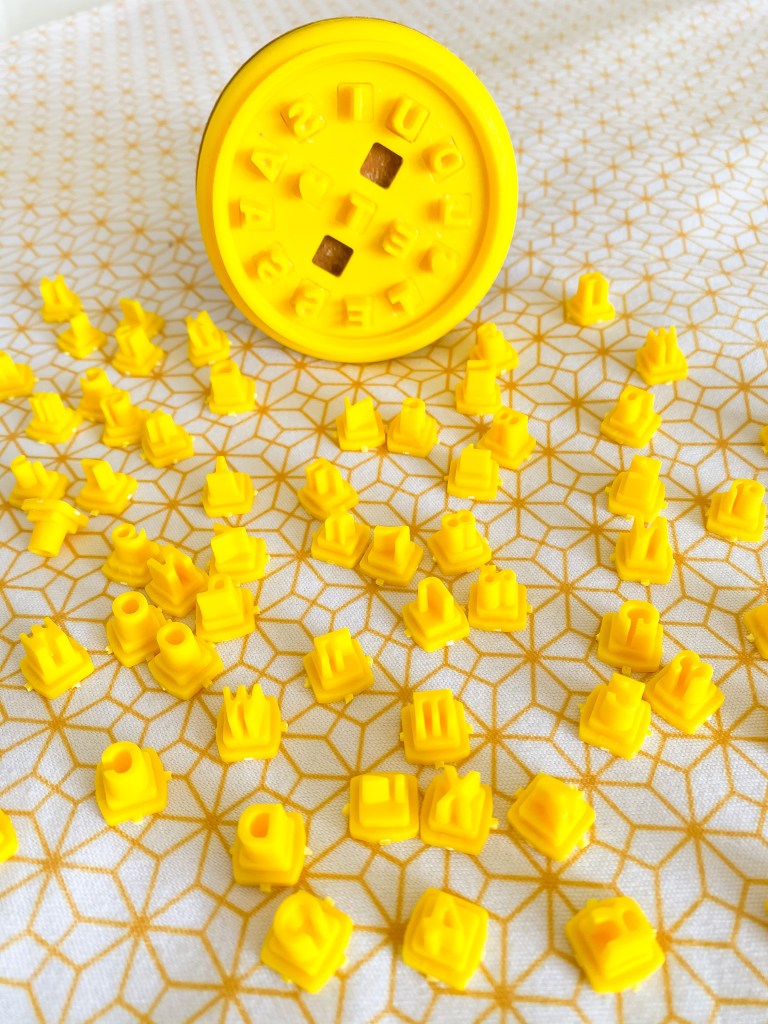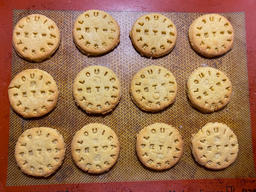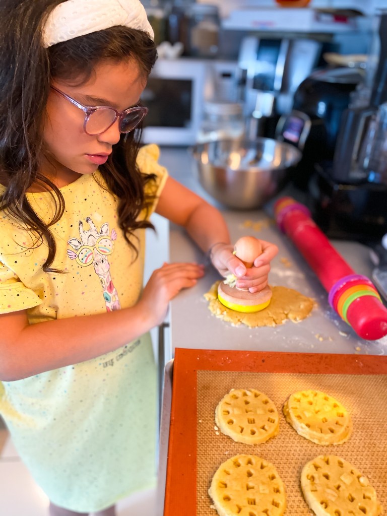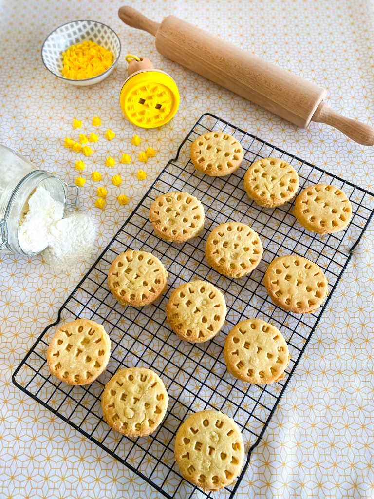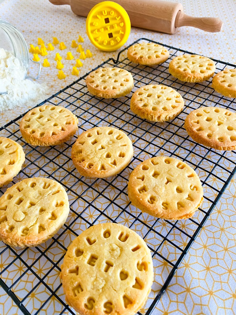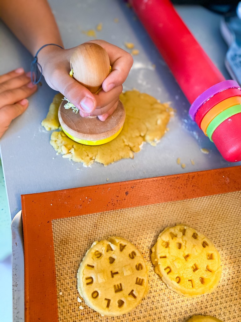 Comme vous le savez peut-être, nous n’achetons quasiment plus de gâteaux industriels pour le goûter des filles. On réalise souvent des sablés maison. On en fait aussi pour les goûters d’anniversaire alors quand j’ai vu cet emporte-pièce pour personnaliser les biscuits, j’ai tout de suite voulu le tester. Ce tampon est livré avec un set de 84 lettres, chiffres et caractères spéciaux interchangeables. Avec les filles, on s’est amusées à faire des sablés avec leurs prénoms et des petits cœurs. D’ailleurs, je vous donne ma recette de sablés inratables.