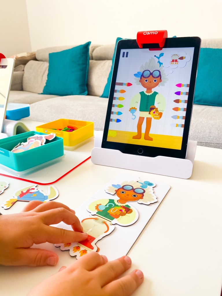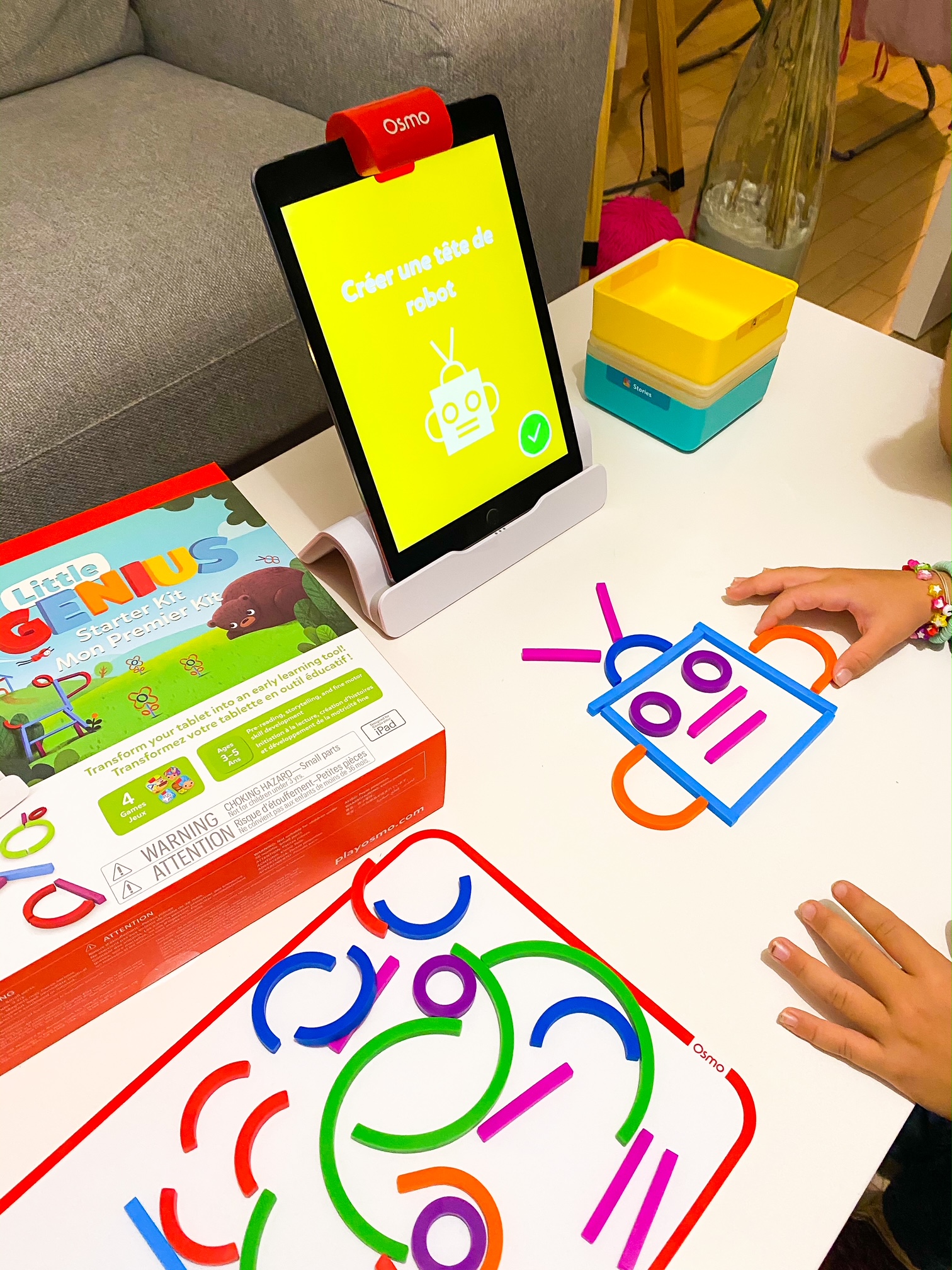 Osmo, c’est vrai petit bijou de technologie avec lequel les enfants, de 3 à 12 ans, apprennent à développer leur concentration, leur sens de l’observation, leur imagination, leur motricité fine, leur logique ou encore leur créativité. Osmo va les accompagner dans l’apprentissage de la lecture, de l’écriture ou du dessin, à résoudre des problèmes de logique ou de maths, marcher sur les traces de Newton en découvrant les lois de la gravité ou encore apprendre les bases du codage et de la programmation informatique.