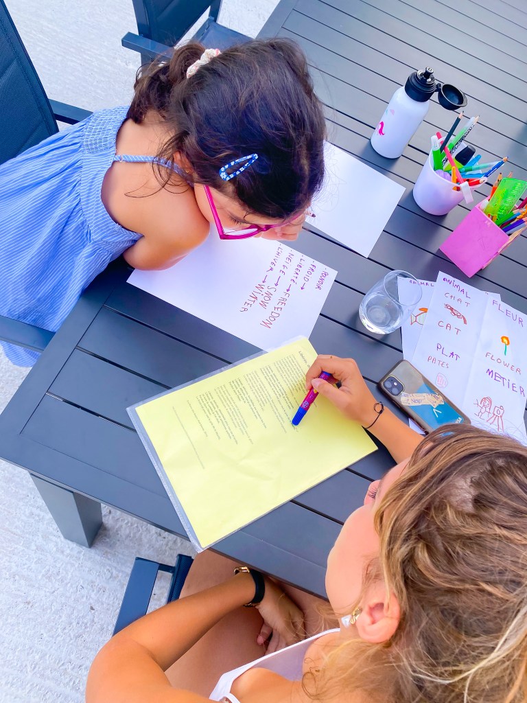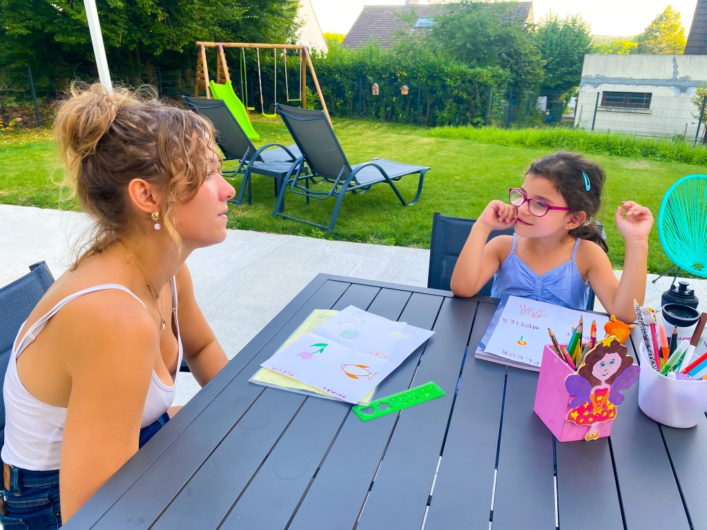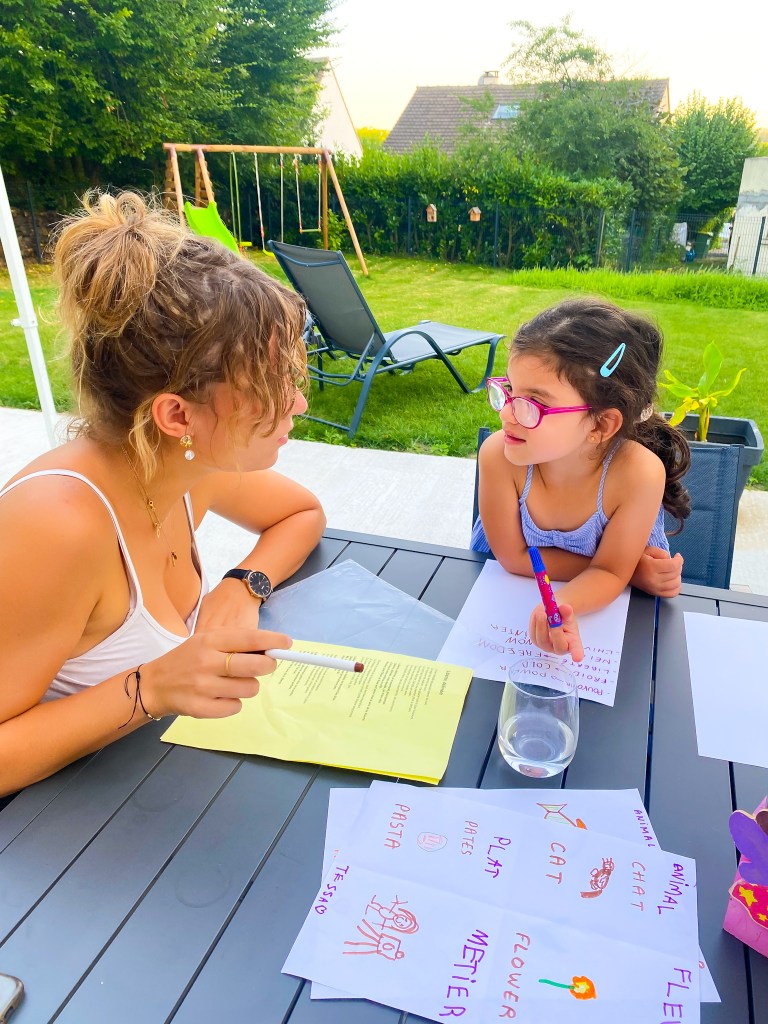 Dès son arrivée, le feeling est super bien passé entre Maude et Tessa. La smartsitter lui a d’abord proposé de réaliser un portrait chinois mais en version dessins. Un jeu qui s’est ensuite transformé en apprentissage d’anglais. Apprendre en s’amusant c’est justement ça le smartsitting ! Pour captiver ma petite Tessa, Maude lui a proposé une autre activité linguistique autour de son dessin animé préféré, La Reine des Neiges. Elle lui a fait écouter la version anglaise de la fameuse chanson « Libérée, délivrée » tout en lui apprenant plusieurs mots de vocabulaire anglo-saxon que Tessa devait écrire et répéter avec le bon accent. Et ce que je peux vous dire c’est que l’on s’est très vite rendue compte que Tessa avait de réelles aptitudes pour les langues car elle prenait un très bon accent en répétant les mots en anglais. Du coup, ça nous a même donné envie de l’inscrire à des cours d’anglais.