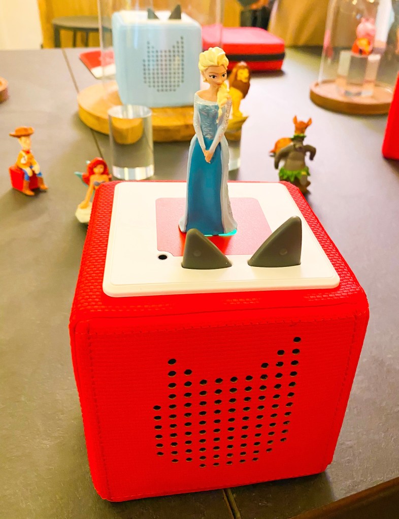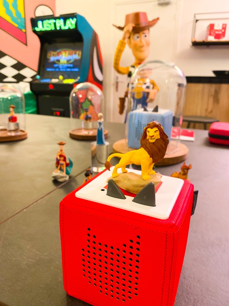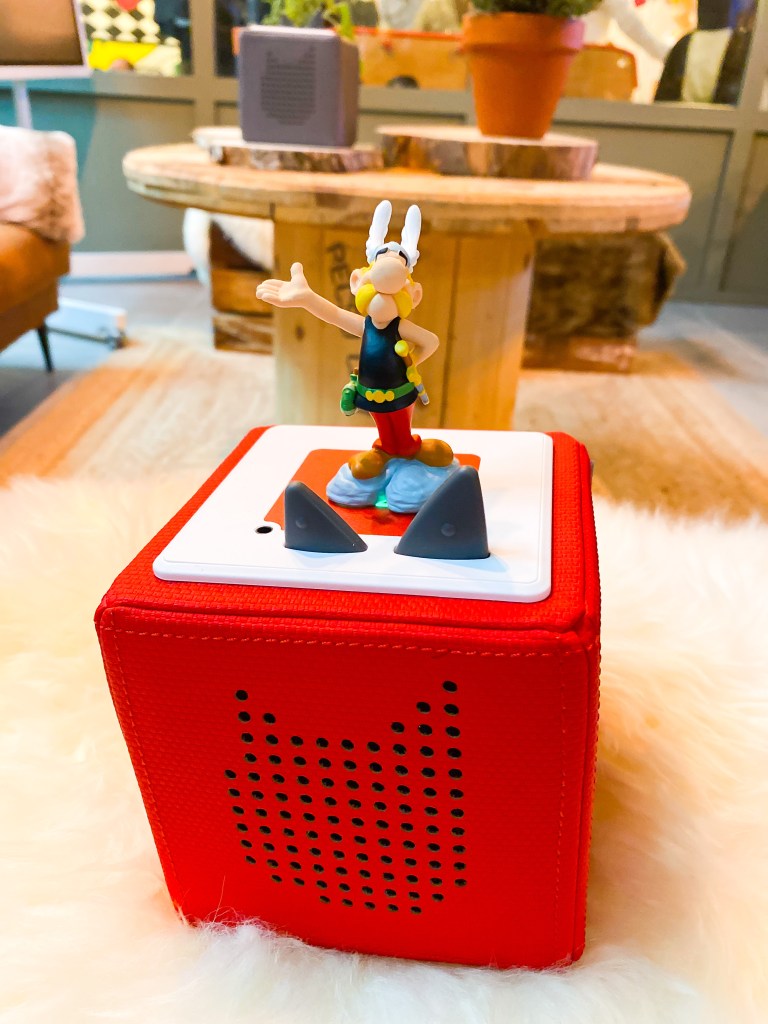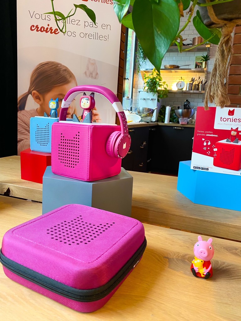 La Tonie Box est un petit théâtre sonore sur lequel l’enfant va venir poser des figurines de ces personnages préférés (Disney, Peppa Pig, Astérix, Pat Patrouille, Elmer, Heidi, Maya l’abeille, le petit chaperon rouge…) pour qu’ils prennent vie dans une aventure audio interactive, loin des écrans. Chaque coffret contient un Tonie créatif pouvant accueillir jusqu’à 90 minutes de contenu personnalisé. Chaque Tonie coûte 14,99€ et il y en a une vingtaine à collectionner.