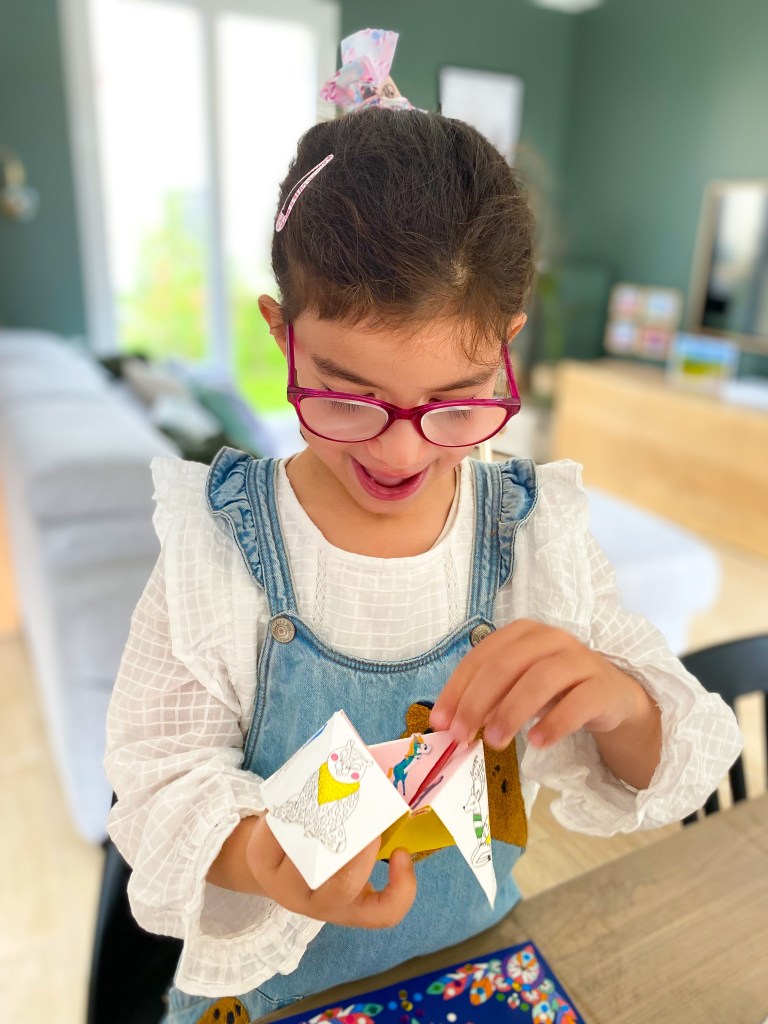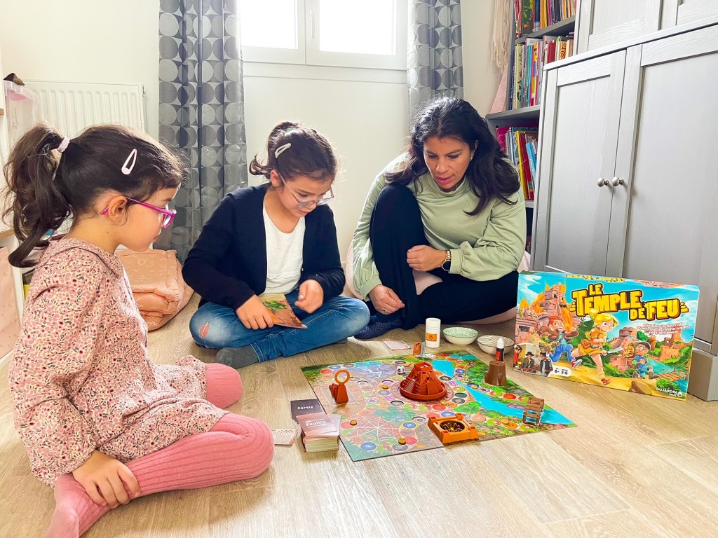 On a adoré jouer en famille à ce jeu de plateau immersif et nous prendre pour des Indiana Jones des temps modernes. Au début quand j’ai lu les modes d’emploi, je me suis dit que ça allait être compliqué mais en fait la mécanique du jeu est simple. Les défis, qui mêlent dextérité, chance et ajout d’ingrédients maléfiques…, sont super sympas à réaliser et je ne vous parle pas de l’effet whaou quand le volcan entre en éruption. Les filles étaient toutes excitées en voyant ça ! Le jeu est conseillé à partir de 7 ans mais Tessa, qui a bientôt 6 ans, s’est éclatée à jouer avec nous.