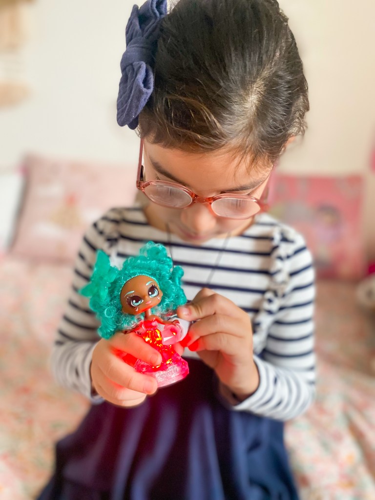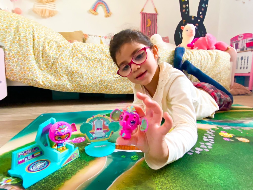 Alerte à la mignonnerie ! Vous aussi vous allez craquer pour ces sacs interactifs aux grands yeux expressifs et aux looks kawaii. Il existe 3 modèles différents : la licorne, le léopard et le renard. En plus d’être trop craquants, ces sacs sont aussi des compagnons de jeux malicieux qui clignent des yeux, qui ronronnent, qui répondent aux questions des enfants par des bruitages rigolos, qui envoient des bisous, qui chantent des chansons, applaudissent ou recréent des sons d’un défilé de mode. 25 sons et réactions différentes trop choux. Tessa l’adore. Elle ne sort plus sans l’avoir mis en bandoulière. D’ailleurs, j’étais tellement jalouse de ses sacs que j’ai absolument voulu faire un look mère-fille avec nos Purse Pets.