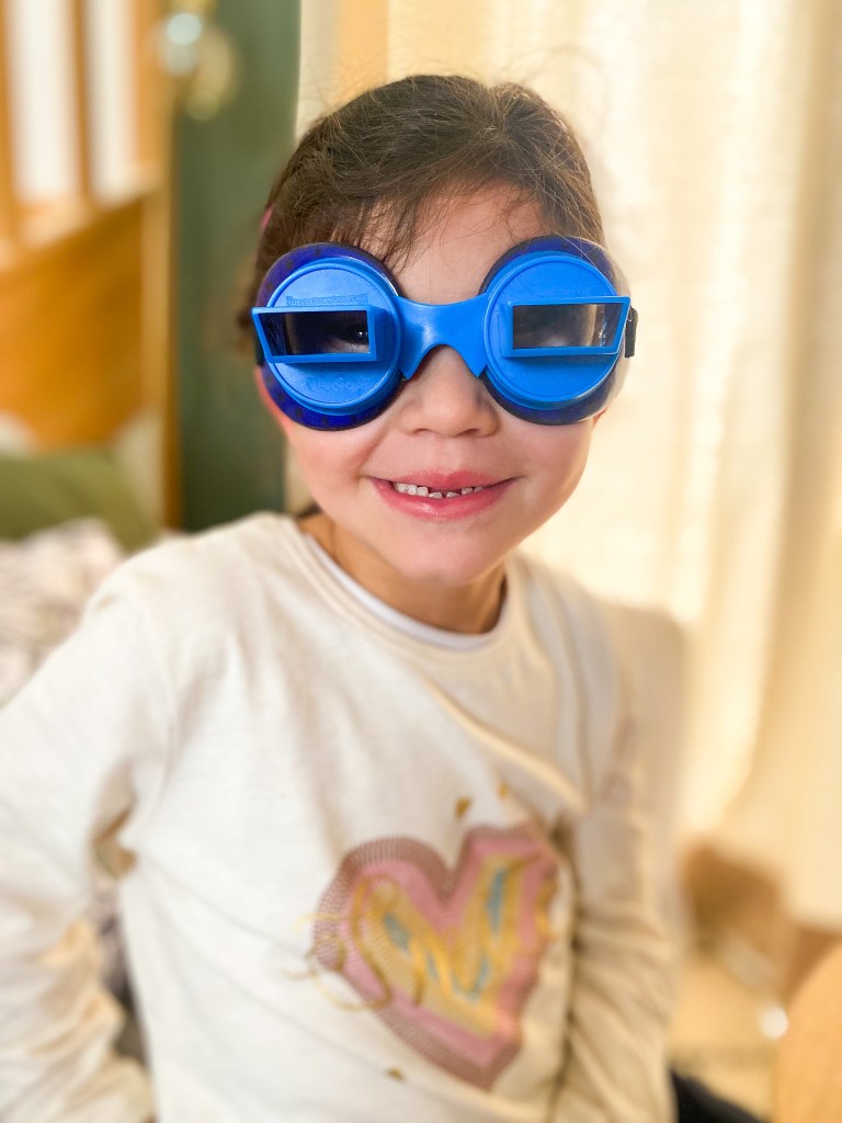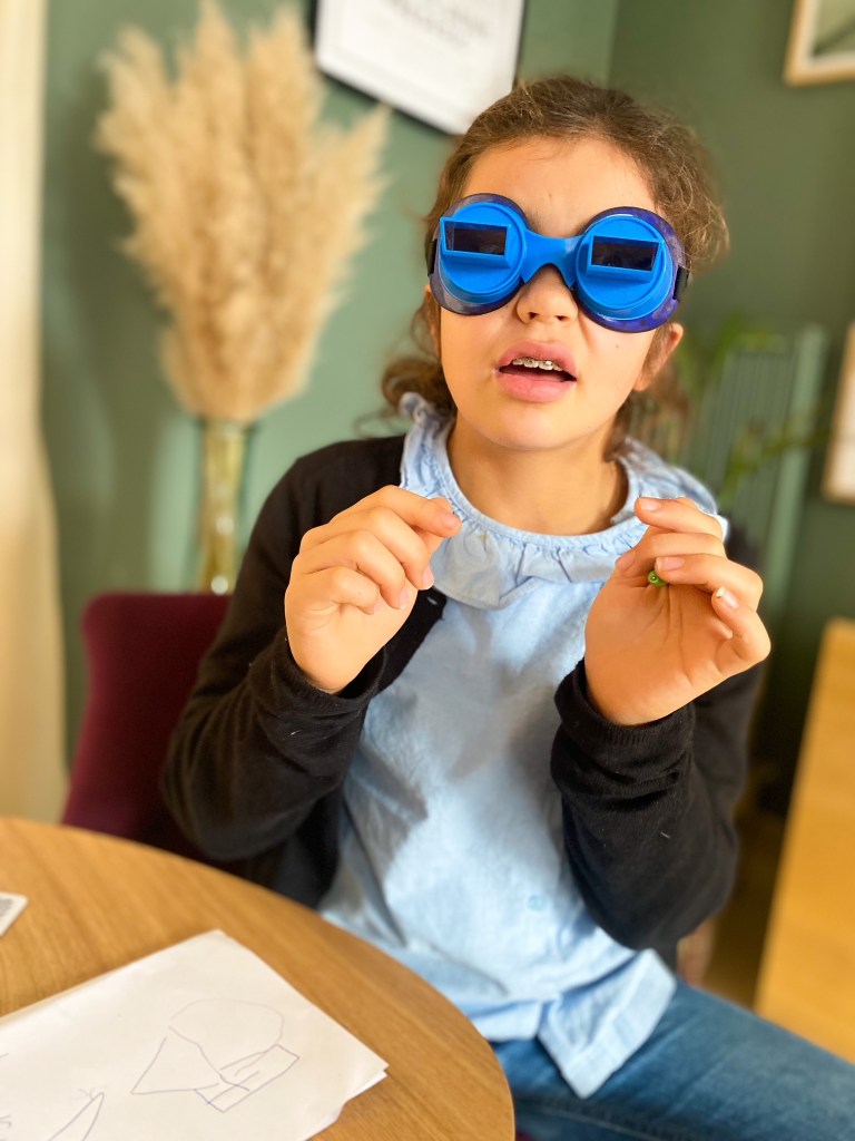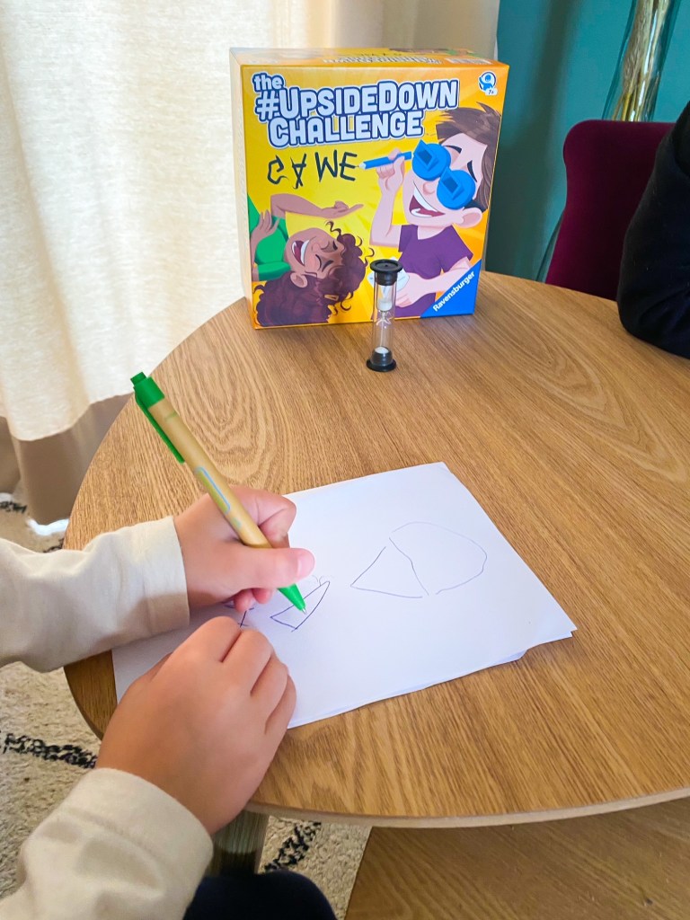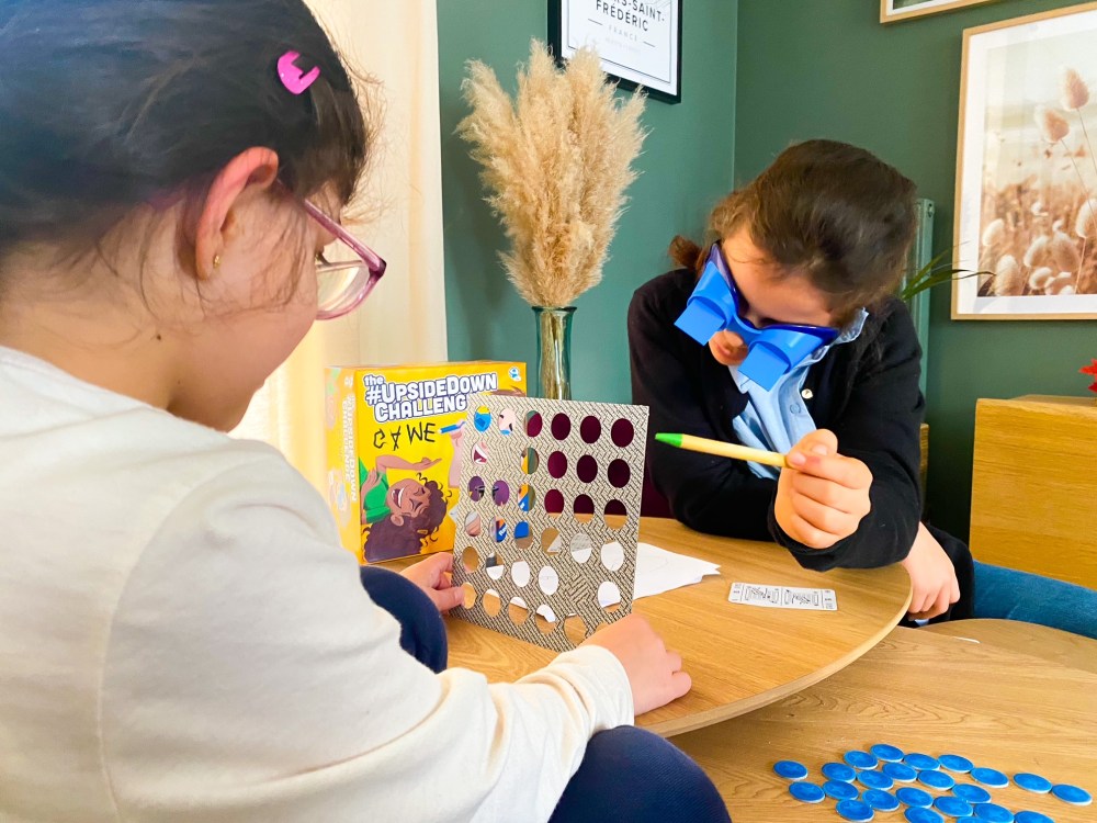 Est-ce que vous déjà écrit votre prénom ou versé de l’eau dans un verre en ayant la tête en bas ? En enfilant les lunettes déformantes Upside Down Challenge, les tâches simples deviennent soudain un véritable défi ! Qu’est-ce qu’on a rigolé avec les filles à réaliser ces missions. Ces lunettes nous donnent l’impression d’être bourrés. Vous n’imaginez même pas les fous rires quand on a dû dessiner un bonbon ou un parapluie. Ça ressemblait à tout sauf à l’objet que l’on devait faire deviner. Ce jeu a mis à rude épreuve notre motricité fine mais on s’est bien marrés.