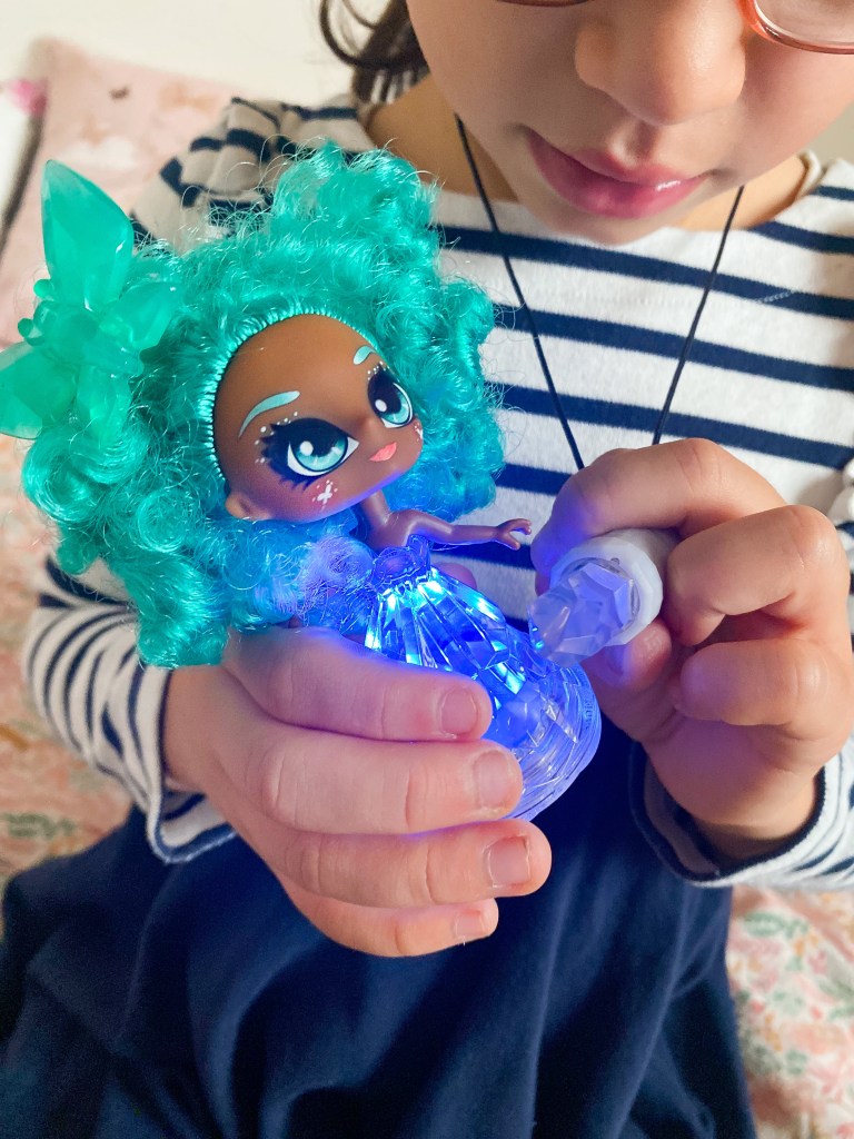Les fées lumineuses Crystalina changent de couleurs de façon magique. En se transmettant leurs auras de lumières et pouvoirs de façon autonome ou grâce à leurs amulettes. Il y a 4 modèles à collectionner. Crystalina vient avec son amulette, son support en forme de lune, une barrette pour les cheveux de la fée et une carte des auras.