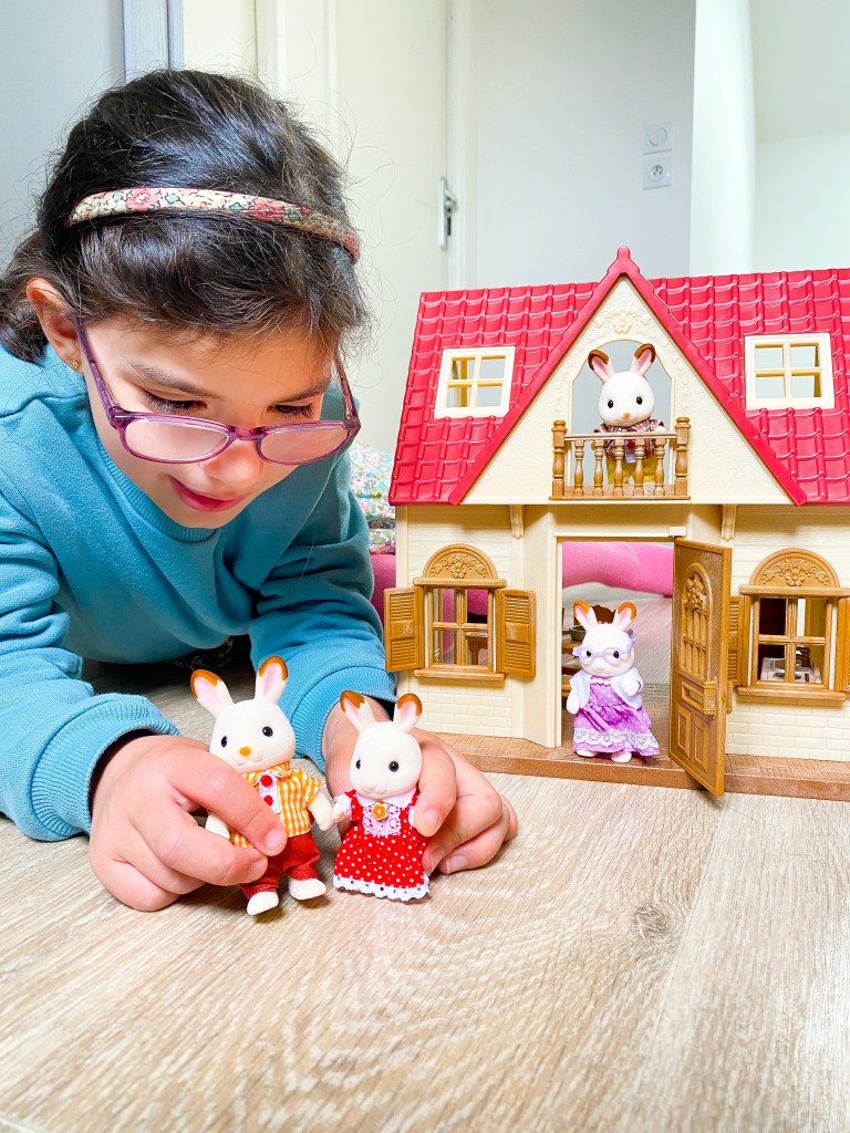 Tessa adore s’inventer des histoires avec tous les membres de la famille Lapin. Ca m’amuse de la voir faire évoluer ses personnages dans leur maison.