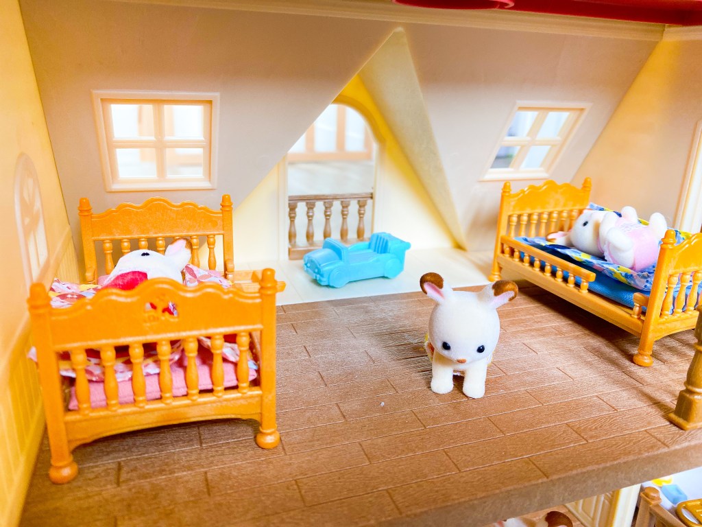 D’ailleurs, j’ai découvert que toutes les maisons Sylvanians se connectent entre elles pour former une plus grande maison, je dirais même un manoir. Je n’imagine même pas la taille de la baraque avec 4 maisons. Ça doit être un vrai château ! Le montage est une nouvelle fois un jeu d’enfant.