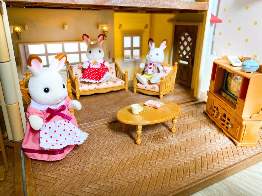 C’est la famille Sylvanians la plus célèbre. On a tous connu cette adorable famille de lapins avec Rhys et Patricia, les grands-parents, Frasier et Teri, les parents, Freya, la fille, Coco, le fils, Crème, le bébé et Kabe et Breeze, les jumeaux.