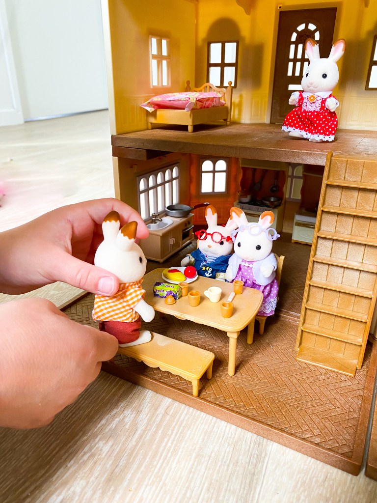 Les Sylvanians c’est toute mon enfance ! D’ailleurs, ces jouets mythiques ont quasiment mon âge car ils ont été créé en 1985 (je suis née en 1984). Alors vous n’imaginez pas ma joie quand nous avons reçu un colis rempli de produits Sylvanian Families. A l’intérieur, le cosy cottage du village, la grande maison éclairée, du mobilier et des accessoires et la famille Lapin Chocolat au complet.