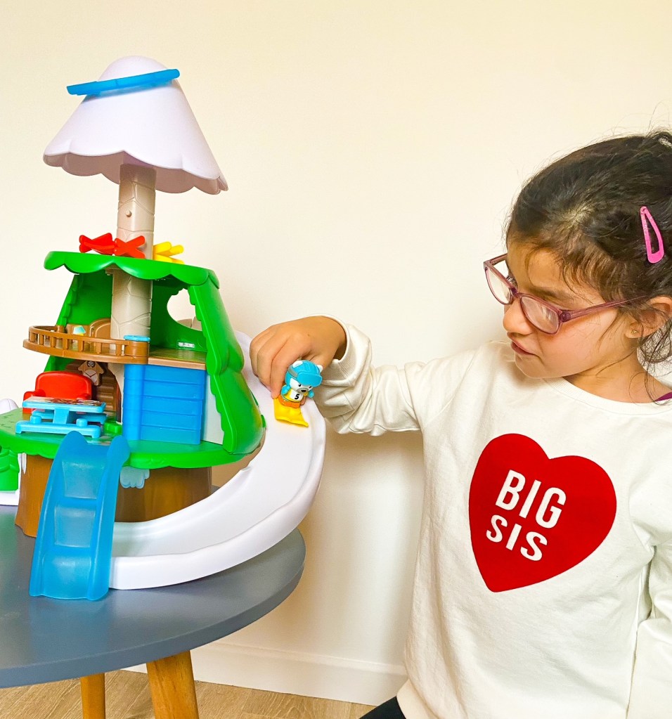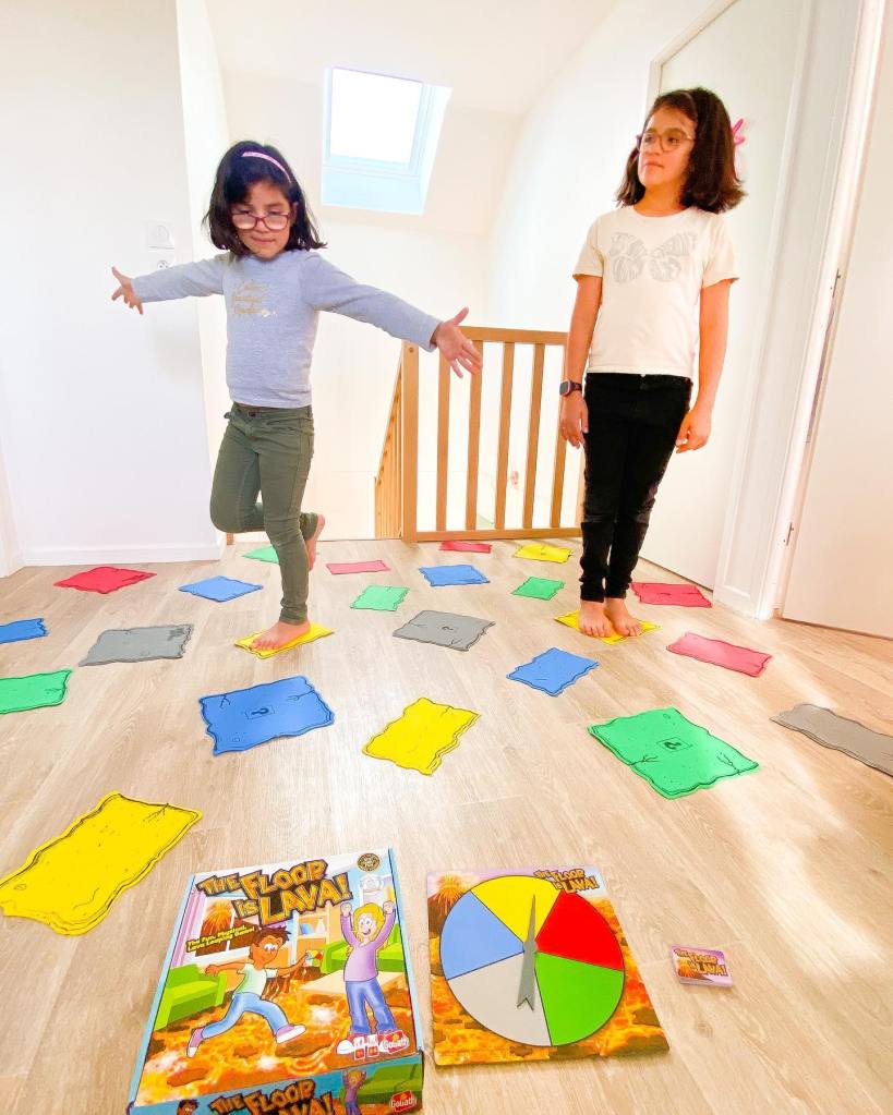 C’est le principe du jeu « The floor is lava » des jeux Goliath. C’est super sympa puisqu’il peut aussi bien se jouer en intérieur comme en extérieur. Il stimule l’activité physique et l’imagination de votre enfant qui redoublera d’efforts pour ne jamais toucher le sol. Les filles se sont éclatées comme des folles à jouer les aventurières.