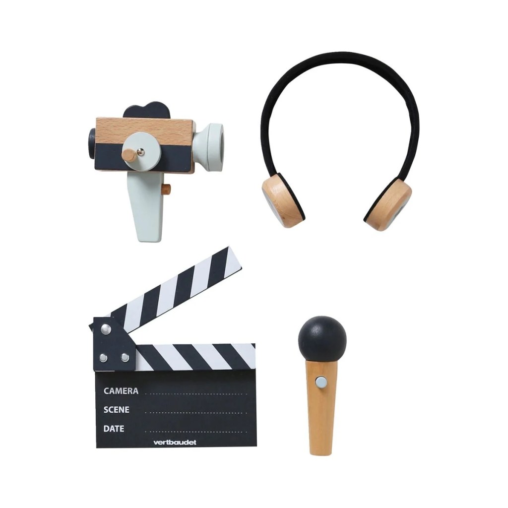 Vertbaudet propose des jeux en bois trop canons et notamment ce set du réalisateur pour que vos enfants se prennent pour Spielberg ou James Cameron.