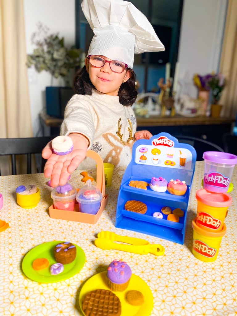 ? Depuis qu’elle a eu eu le super Café Playdoh de Hasbro à l’atelier des lutins d’Amazon, Tessa s’est découvert une passion pour la pâtisserie et la préparation de boissons. Elle adore confectionner des gâteaux, des biscuits mais aussi des milkshakes et des latte macchiato avec de la pâte à modeler. Une vraie barista ! Du coup, elle nous prépare régulièrement de super goûters bien gourmands.