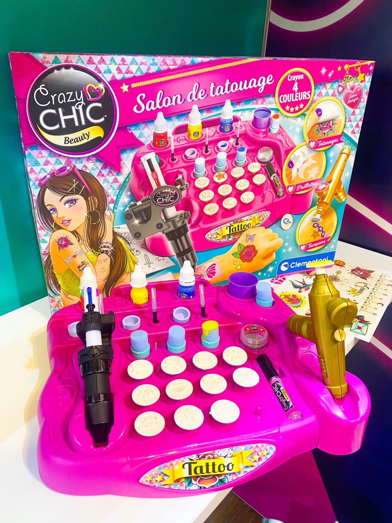 Pour les fans de tatouages, voici un coffret super cool pour réaliser d’incroyables tatouages personnalisés ! Grâce à la machine à tatouer spéciale pour la peau et ses mines colorées interchangeables, les petites filles pourront s’amuser à créer leurs propres tatouages, en les dessinant à main levée ou à l’aide des pochoirs.