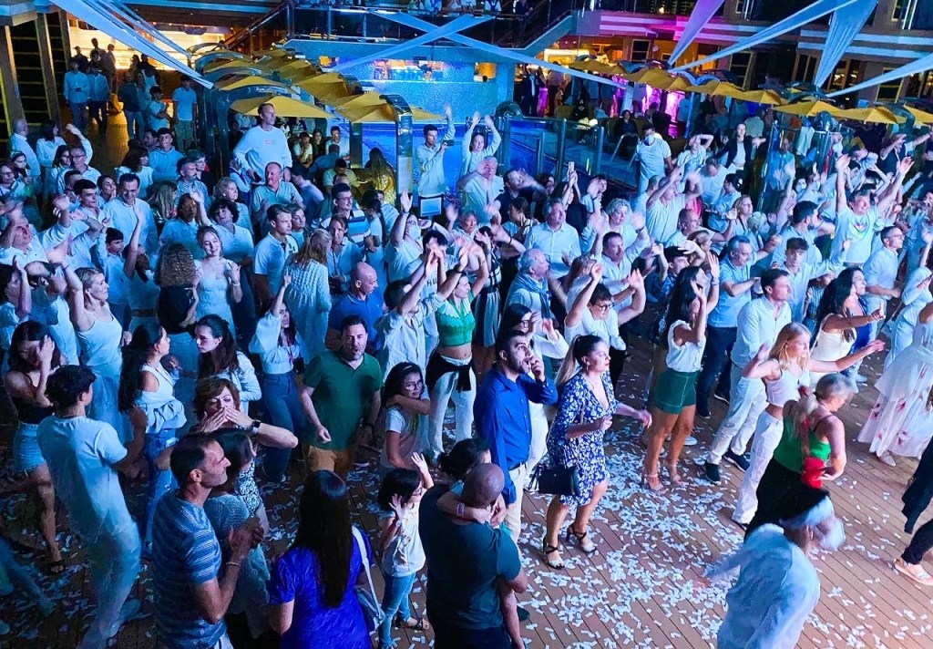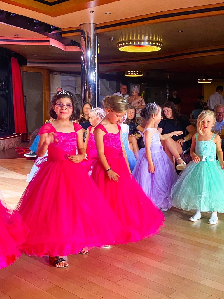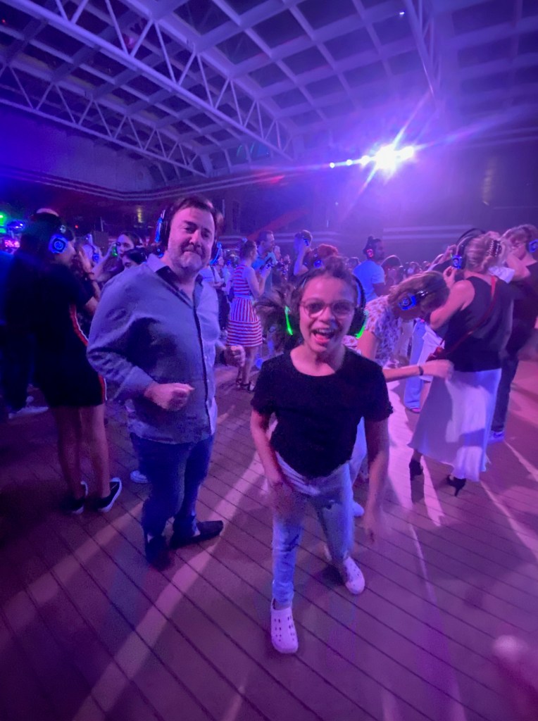 Le 1er soir, nous avons été voir un spectacle au théâtre, juste après le dîner. Le show était digne d’un spectacle de Broadway. C’était devenu notre petit rituel d’après-dîner. Nous avons également participé à des soirées dansantes et notamment la fameuse soirée blanche ou encore la soirée Silent Disco où chaque participant était équipé d’un casque audio et pouvait choisir entre différents styles de musique. Ça a beaucoup plu aux filles !