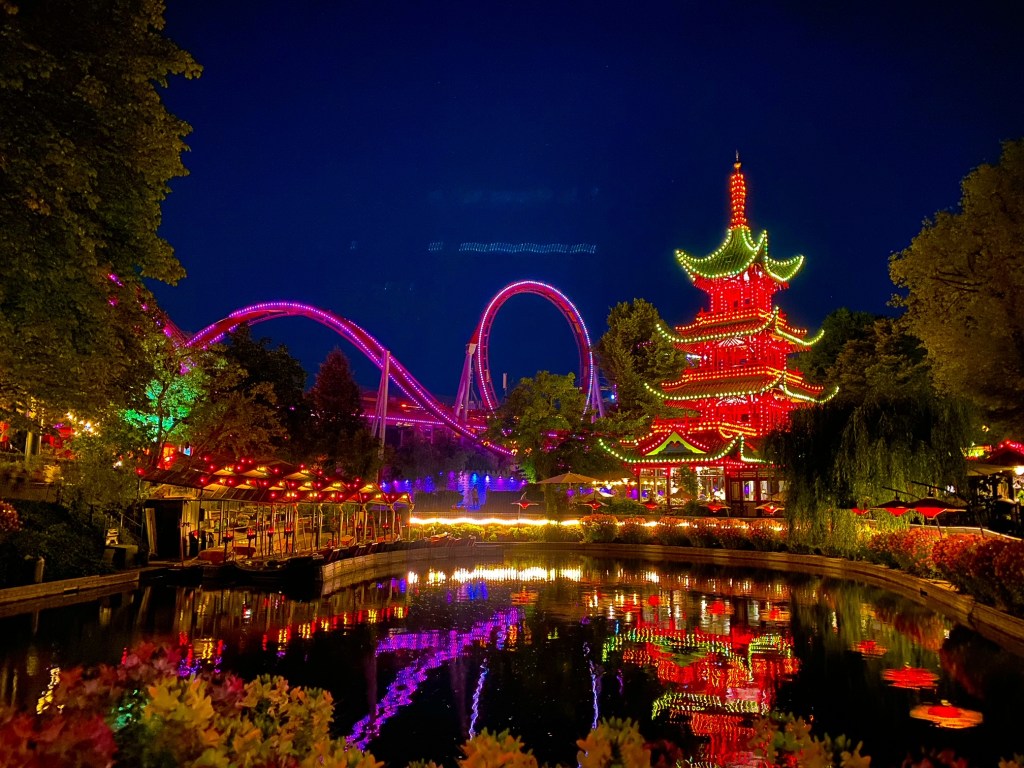 C’est le 2ème plus vieux parc d’attractions du monde. Il est même connu pour avoir été la source d’inspiration pour le tout premier Disneyland. Mais attention, ce n’est pas parce que le parc a plus de 180 ans qu’on va y trouver des manèges vieillots ou démodés. Bien au contraire, de gros investissements sont réalisés et les attractions sont renouvelés régulièrement pour toujours offrir de nouvelles sensations, tout en gardant des attractions historiques. Manèges traditionnels, manèges à sensations, stands forains… Il y en a pour tous les goûts, pour les plus téméraires comme pour les froussards. Louisa s’est aventurée toute seule sur la Golden Tour avec sa chute libre de 63 mètres de haut ! Dans ce parc, il n’y a pas que des manèges. On peut aussi assister à des parades, à de grands spectacles, à des pièces de théâtre et à des concerts et à des festivals de musique. En été, ne ratez pas le magnifique feu d’artifice, tous les samedis soir à 23h30. Il faut absolument que vous voyez le parc le soir car les illuminations sont magnifiques.