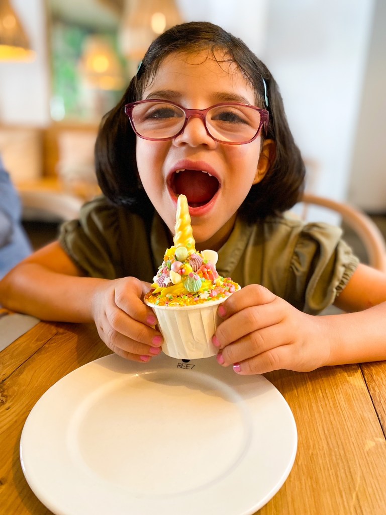 Après avoir fait des milliers de pas, nous sommes allés recharger nos batteries, en fin de journée, dans un salon de thé très girly et absolument instagrammable, Le Ree7. Tessa était trop contente de manger un cupcake licorne. Les ice tea maison et ice latte sont délicieux.