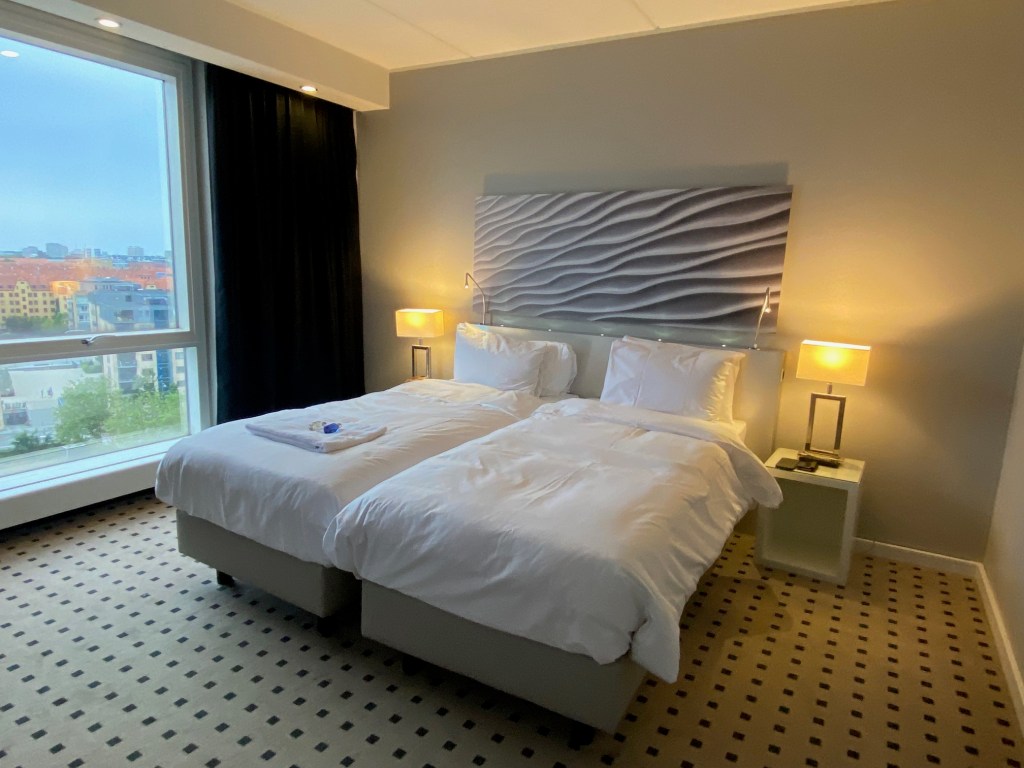 L’hôtel est situé à 5 minutes en voiture du centre de Copenhague. Si vous avez de la chance, vous pourrez bénéficier d’une superbe vue sur la ville. Nous avons réservé une suite avec 2 chambres communicantes. Il faut que vous sachiez que les prix à Copenhague sont assez chers, que ce soit pour le logement mais aussi la restauration. Nous avons eu un très bon prix sur Booking (233€ la nuit sans le petit-déjeuner au lieu 400 ou 500€) car cette chaîne d’hôtel est généralement très chère.