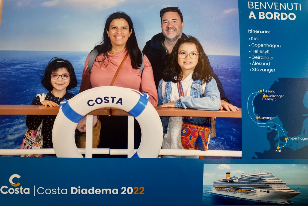Nous avons choisi le croisiériste Costa Croisières qui proposait une croisière d’une semaine au départ de Copenhague à bord du Costa Diadema. Ce qui nous a plu c’est que chez Costa, seuls les adultes paient leurs billets. Les enfants (de – 18 ans), eux, ne paient que les taxes et charges portuaires qui s’élèvent à seulement 169€. Pour cette belle semaine de vacances, nous avons payé 3160€. Nous avons choisi une cabine avec balcon car nous voulions profiter de la belle vue sur mer. Si vous voulez payer moins cher vous pouvez prendre une cabine avec juste un hublot ou vue intérieure mais j’avoue que cette dernière me déprimerait car vous n’avez aucune fenêtre.