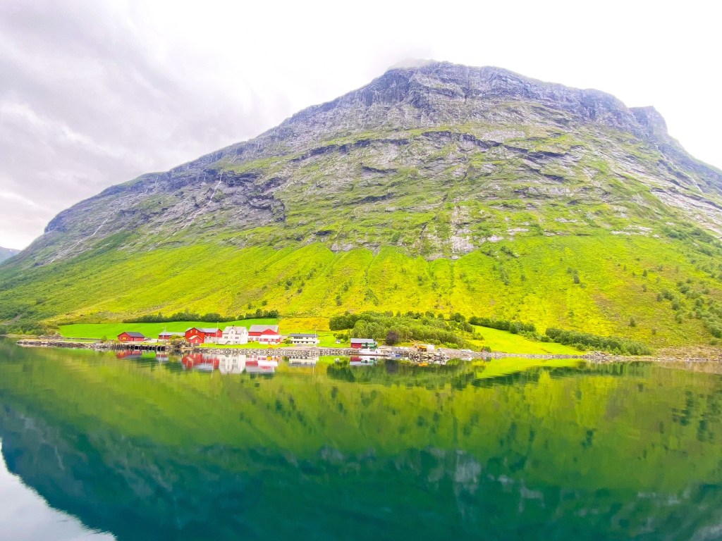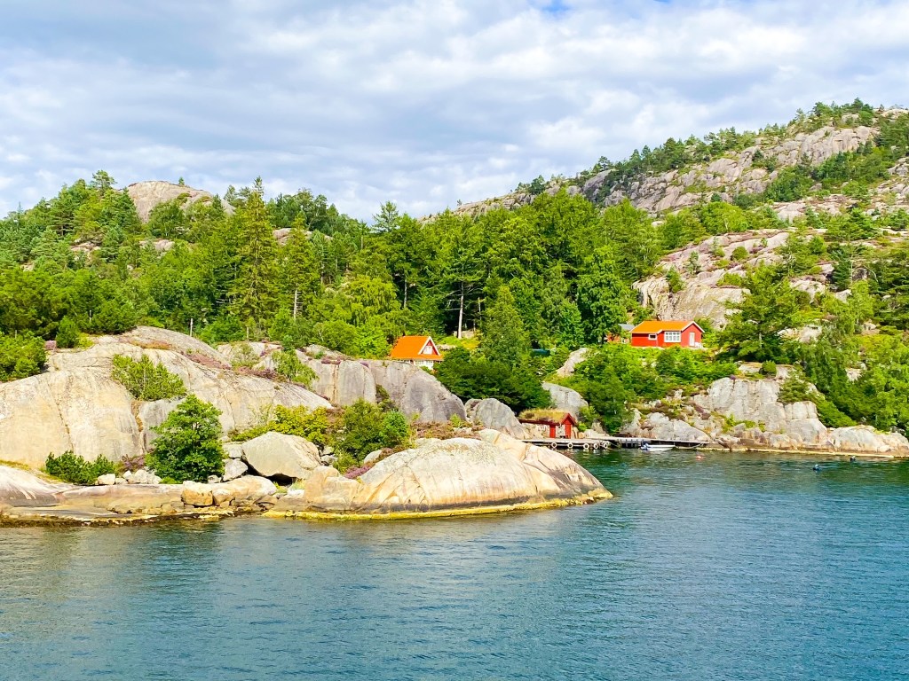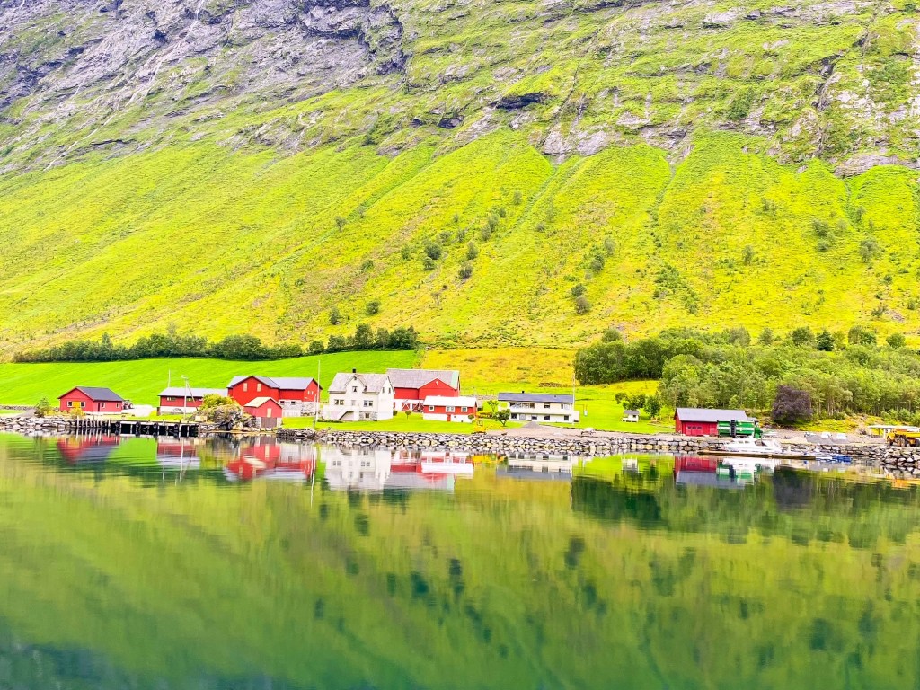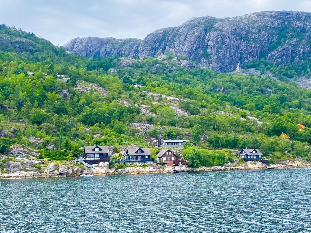 En tout cas, la balade en bateau est très agréable. On a pu admirer les jolies cabanes rouges qui servent de maisons de campagne aux Norvégiens, les cascades et même les chèvres sauvages qui ont élu domicile dans les falaises abruptes du fjord. Nous avons aussi eu des fermes d’élevage de saumon de Norvège.