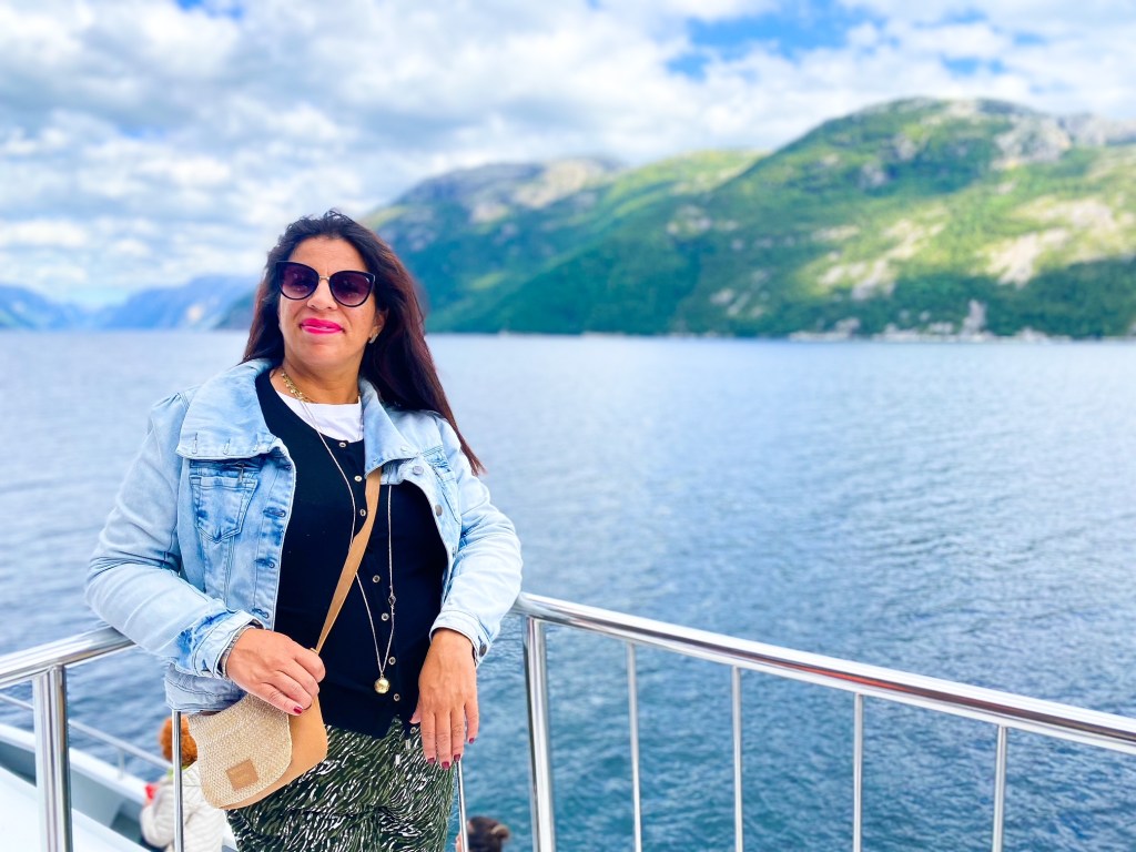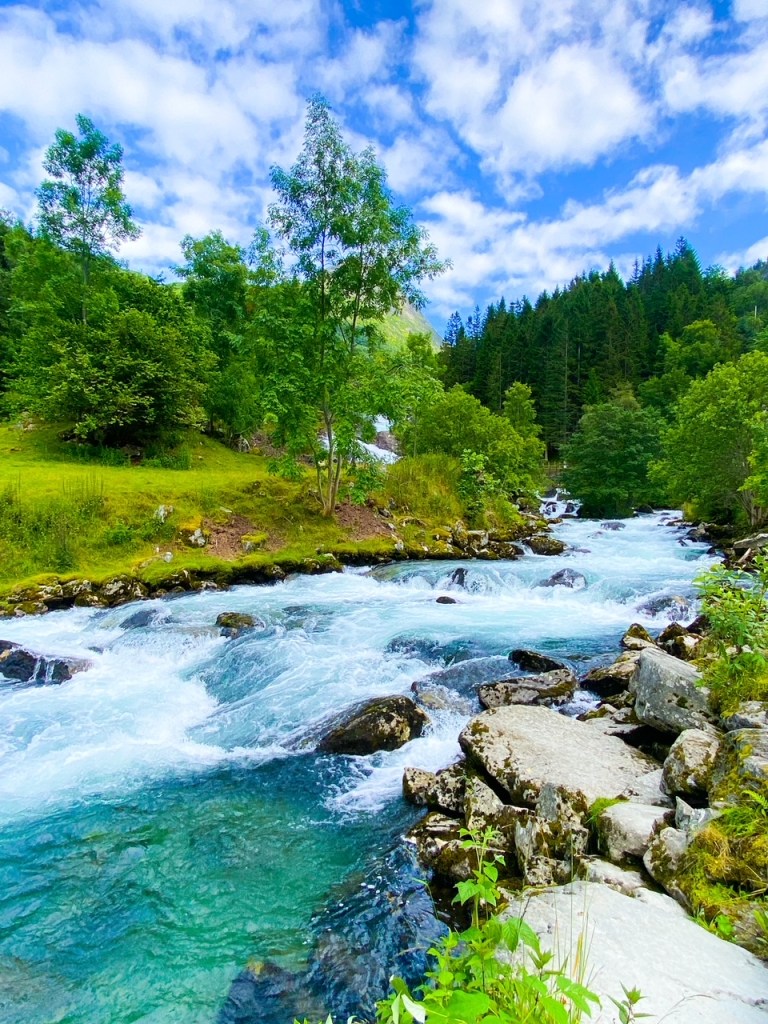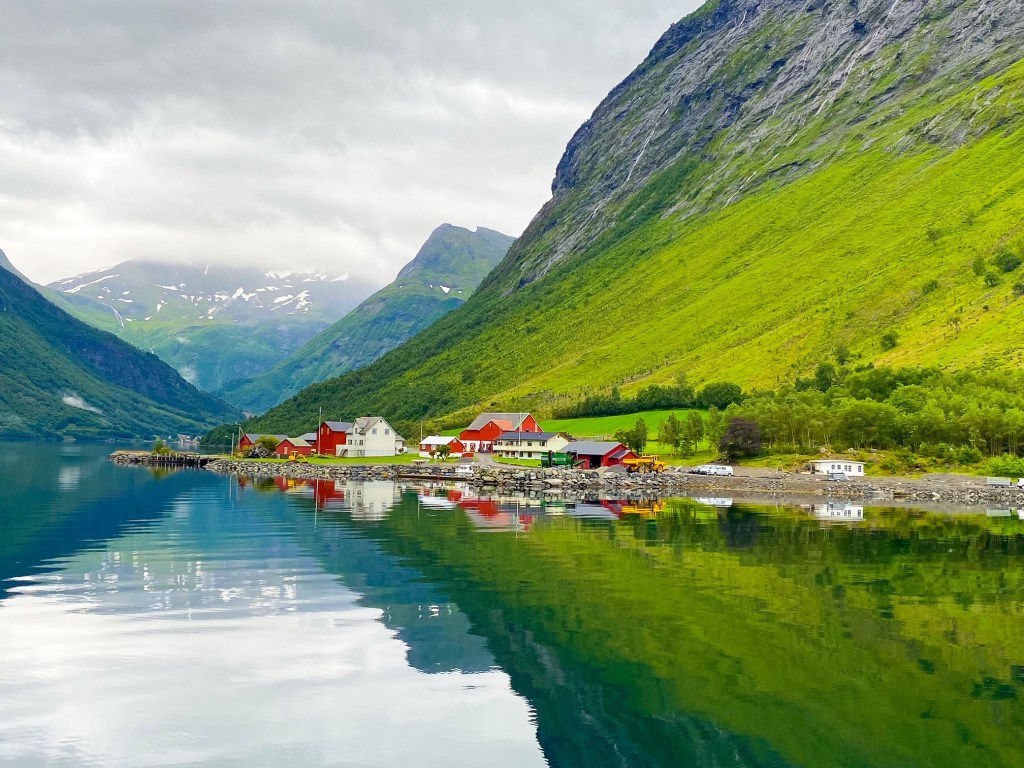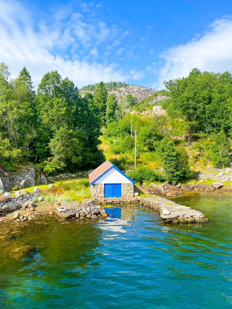 En tout cas, la balade en bateau est très agréable. On a pu admirer les jolies cabanes rouges qui servent de maisons de campagne aux Norvégiens, les cascades et même les chèvres sauvages qui ont élu domicile dans les falaises abruptes du fjord. Nous avons aussi eu des fermes d’élevage de saumon de Norvège.
