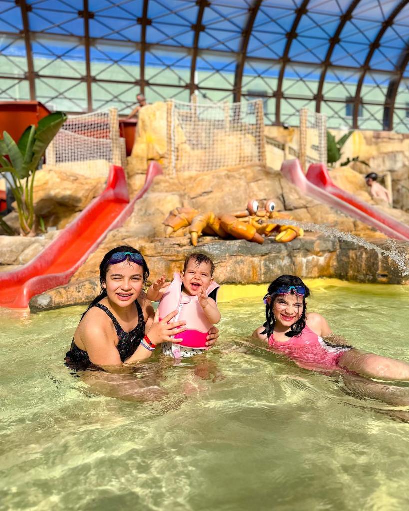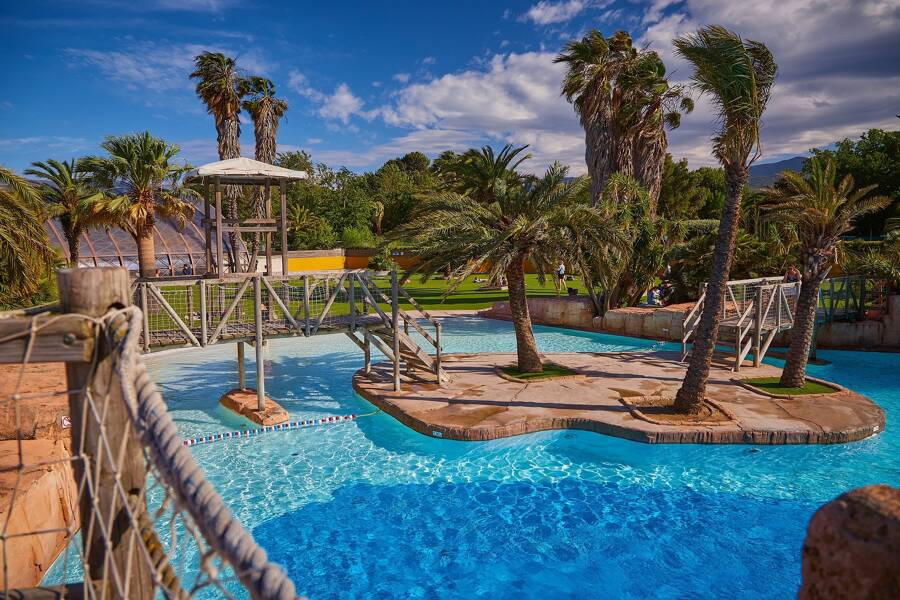 Ce qui nous a séduit aussi c’est son immense parc aquatique, l’un des plus grands d’Europe, 10 000 m² de piscines et de toboggans ! Un grand lagon de plein air (avec un grand bassin et un espace toboggans) de 1 400 m², une piscine couverte et chauffée de 480 m² accessible uniquement aux adultes en haute saison pour qu’ils puissent se détendre avec des cascades, des bulles et des cols de cygne hydromassants, une piscine couverte et chauffée aménagée spécifiquement pour l’amusement des enfants sur 620 m², un espace de jeux aqualudiques de même qu’un espace comprenant 3 toboggans géants de 8 mètres de haut et un toboggan multipistes.