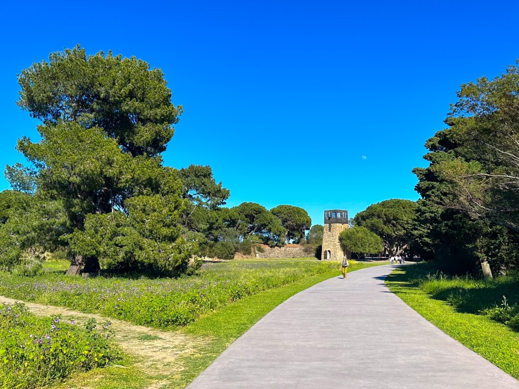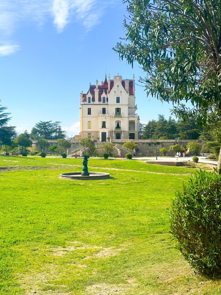 Le château de Valmy est un domaine viticole, perché sur les hauteurs d’Argelès et surplombant la Mer Méditerranée. Si vous êtes amateurs de vins, vous pouvez venir déguster les crus de la propriété dans la cave et après vous balader dans le joli parc paysager de 3 000 m². Entre pelouse, arbres fruitiers, pinède, fontaines, statues, pergola et petits sentiers, nous avons passé un bon moment au vert dans le parc. On aurait même pu pique-niquer sur l’herbe. Les filles se sont amusées à l’aire de jeu près du château.