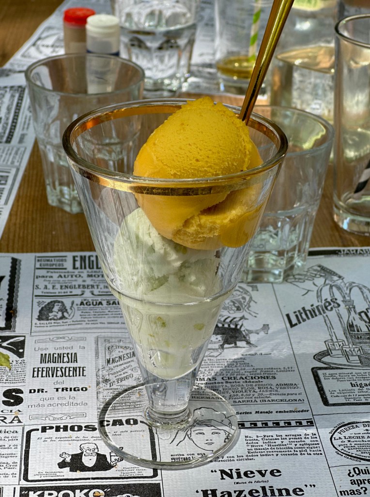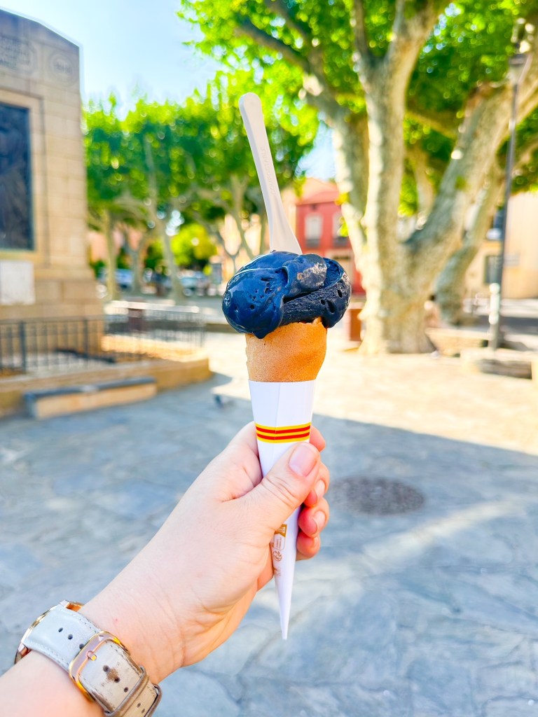 On s’est baladés le long du château royal, situé sur un promontoire rocheux avec une vue imprenable sur le port et la baie de Collioure, jusqu’à la fameuse église Notre-Dame des Anges, qui a quasiment les pieds dans l’eau. On s’est perdus dans les jolies ruelles aux façades de maisons colorées. On a poussé les portes de charmantes petites boutiques d’artisanat, de bijoux ou de petits créateurs. Après avoir arpenté la ville, nous avons fait une pause gourmande bien méritée chez un glacier. Claire m’avait conseillé d’aller manger une bonne glace chez Olivier Bajard mais malheureusement la boutique était fermée le lundi. Du coup, nous avons choisi de prendre une glace à l’Hôtel La Frégate.