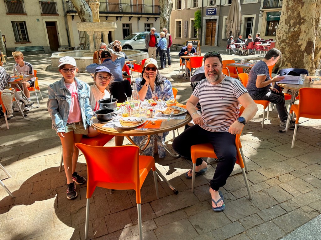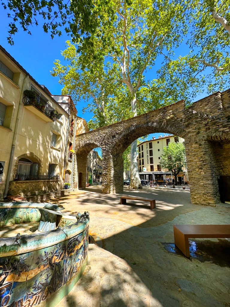 Nous avons fait un stop dans le joli village de Céret, la capitale de la cerise. On a commencé par admirer le fameux pont du diable qui surplombe une rivière, avant de nous balader dans le centre-ville et le long des remparts médiévaux. Au détour des ruelles pavées, on a découvert de jolies places cachées, avec des restaurants et des cafés. C’est d’ailleurs dans l’une de ces placettes que nous avons déjeuné en terrasse, à l’ombre des platanes. Je vous recommande le resto « Le pied dans le plat » avec son menu : entrée + plat + dessert très copieux pour 15€. Leur spécialité : les galettes et les crêpes mais aussi les moules-frites. Nous n’avons pas eu le temps de visiter le musée d’art moderne de la ville.