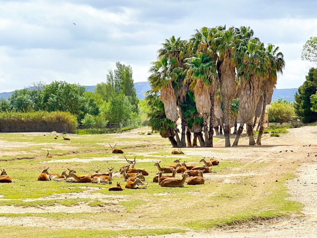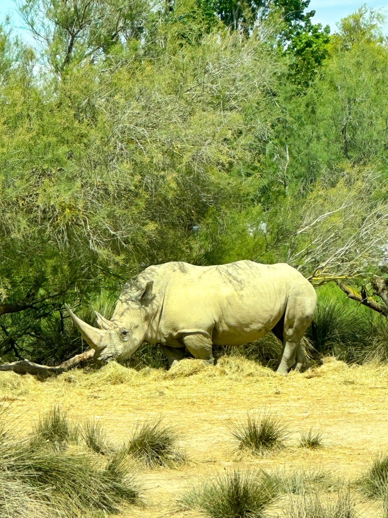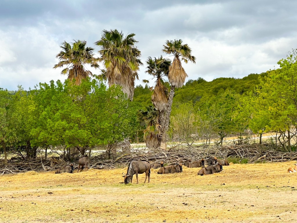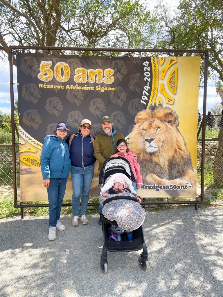 A 1h du camping, pas très loin de Narbonne, direction la réserve africaine de Sigean. Ce parc zoologique accueille plusieurs milliers d’animaux sur de grands espaces comme s’ils étaient dans leur milieu naturel. C’est quand même beaucoup mieux que dans certains zoos où ils sont enfermés dans de minuscules enclos ! Nous avons commencé la visite en fin de matinée par le safari en voiture, 7 km à travers la brousse et la savane. C’était totalement dépaysant ! Les étendues étaient tellement immenses qu’on s’est dit que les animaux devaient se sentir comme dans leurs terres d’origine. Malgré l’immensité des espaces, on a quand même pu observer facilement les bêtes et notamment les ours à collier, les girafes, les zèbres, les rhinocéros blancs, les lions, les autruches, les troupeaux d’antilopes, de buffles, de gnous…