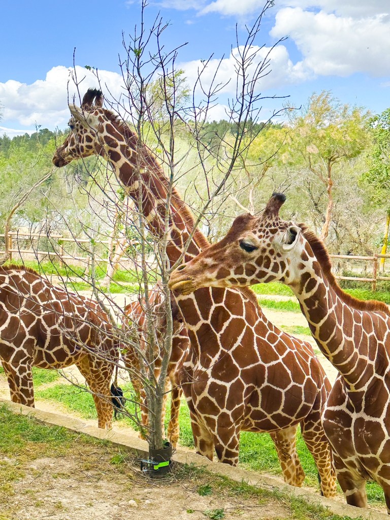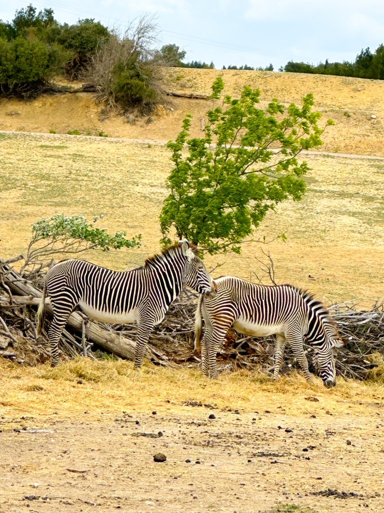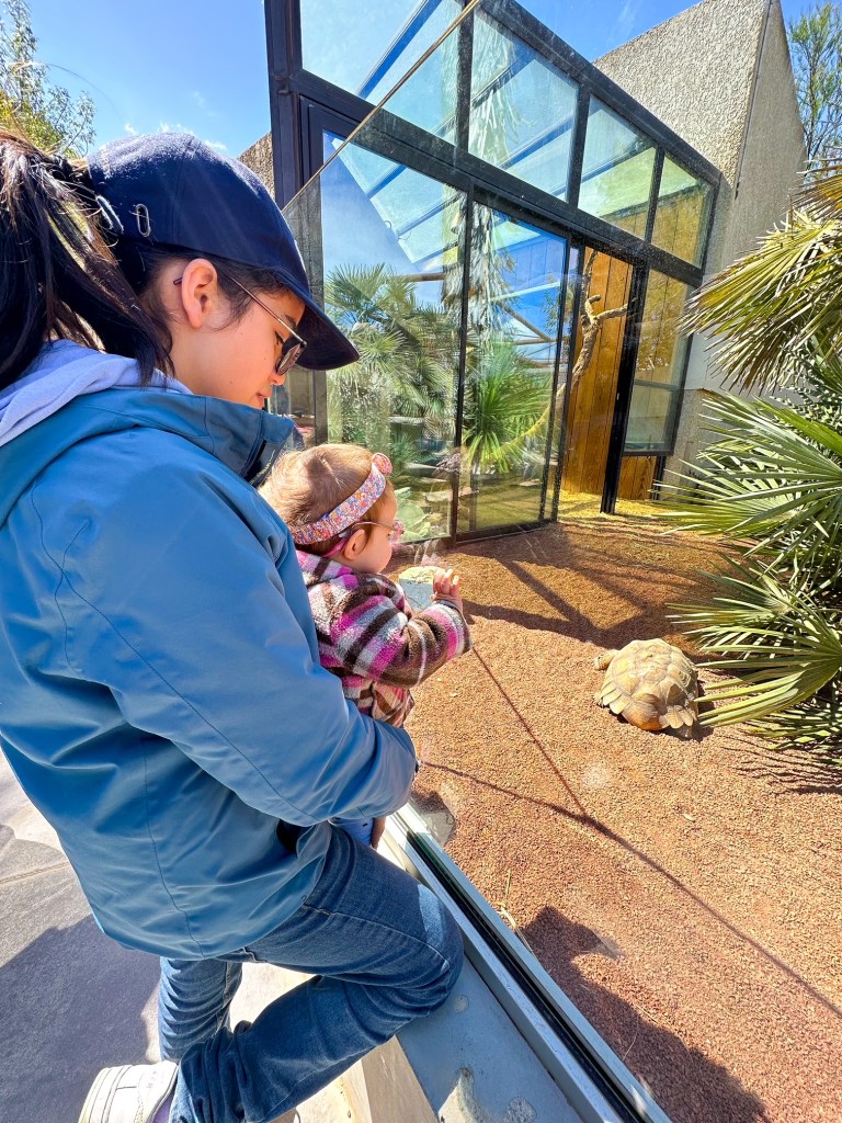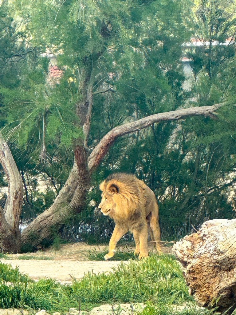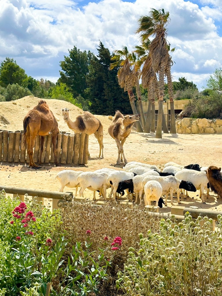 Après avoir pique-niqué sur les tables prévues à cet effet sur le parking (il y a aussi un restaurant-cafétéria et des snacks à l’intérieur), nous avons ensuite pris la direction du parc à pied. Comptez au moins 3h de visite en cette période. Encore une fois les enclos sont magnifiques et notamment l’immense plaine africaine dans laquelle vivent en semi-liberté des gnous, des buffles, des oryx, des springbocks, des autruches… On peut les observer gratuitement grâce à des longues vues. Et on en parle de l’enclos des dromadaires avec ses magnifiques palmiers. On se serait cru au Maroc ! On est aussi resté un moment scotchés devant les nouveaux enclos des guépards et des lycaons. Et gros coup de cœur également pour l’îlôt en bois flotté des pélicans. Le plus beau moment de notre visite a été sans conteste le nourrissage des girafes. C’était la première fois qu’on en voyait d’aussi près ! On appris plein de choses sur mon animal de la savane préféré.