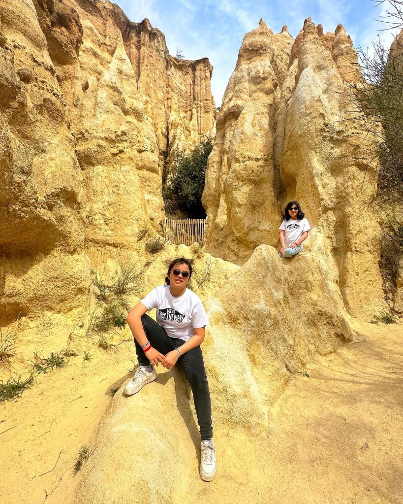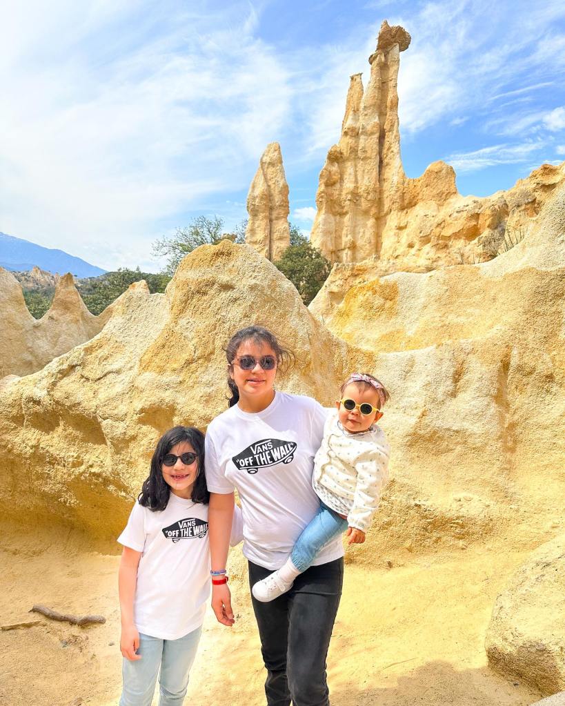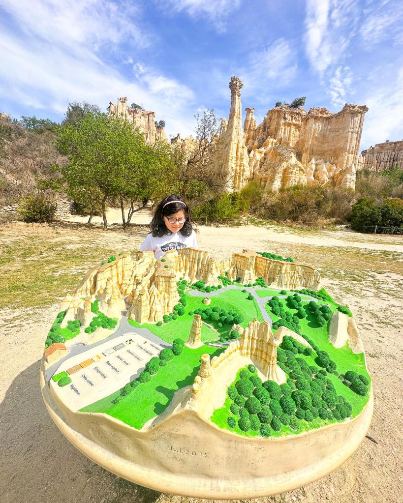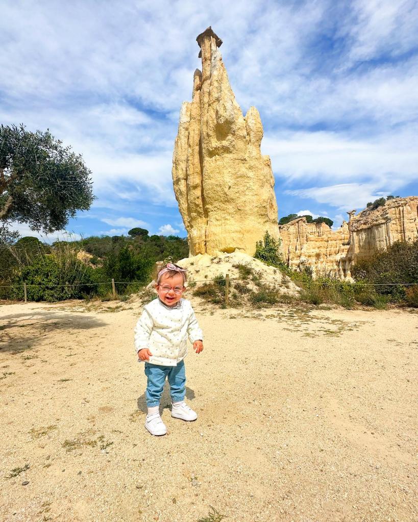 Ma copine Claire nous a conseillé de visiter ce site exceptionnel, situé à 45 minutes du camping. Après une petite randonnée de 1km depuis le parking (largement praticable en poussette), nous avons découvert de majestueuses formations rocheuses ou » cheminées de fées ». On se serait cru au Far West ! On a passé une bonne heure à les admirer et à les photographier sous tous les angles.